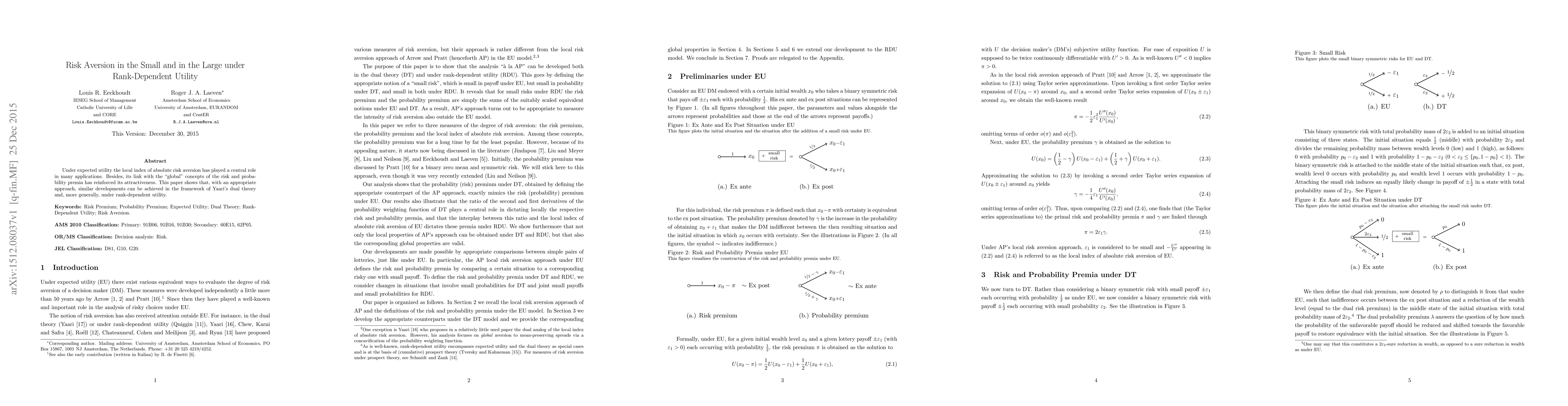 This paper explores the concept of risk aversion in both small and large contexts within the framework of rank-dependent utility, demonstrating that similar analytical developments can be achieved as those under expected utility theory. It highlights the relevance of the local index of absolute risk aversion in this broader theoretical context.