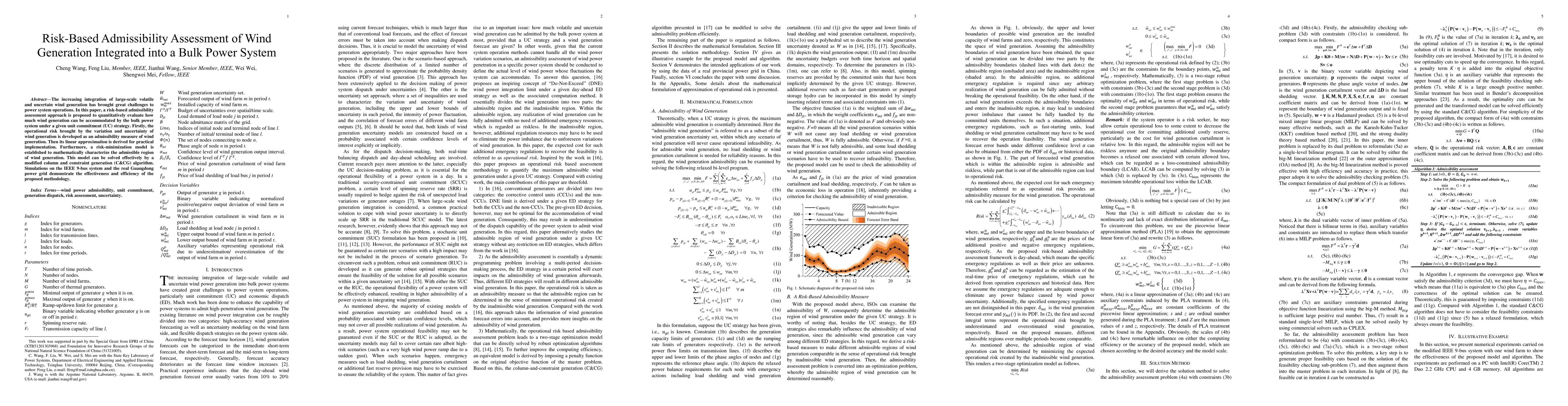 This paper proposes a risk-based admissibility assessment approach to evaluate wind generation integration into bulk power systems. It develops a risk measure for wind variability, derives a linear approximation, and establishes a risk-minimization model solved by a modified C&CG algorithm, validated through simulations on IEEE 9-bus and Guangdong power grids.