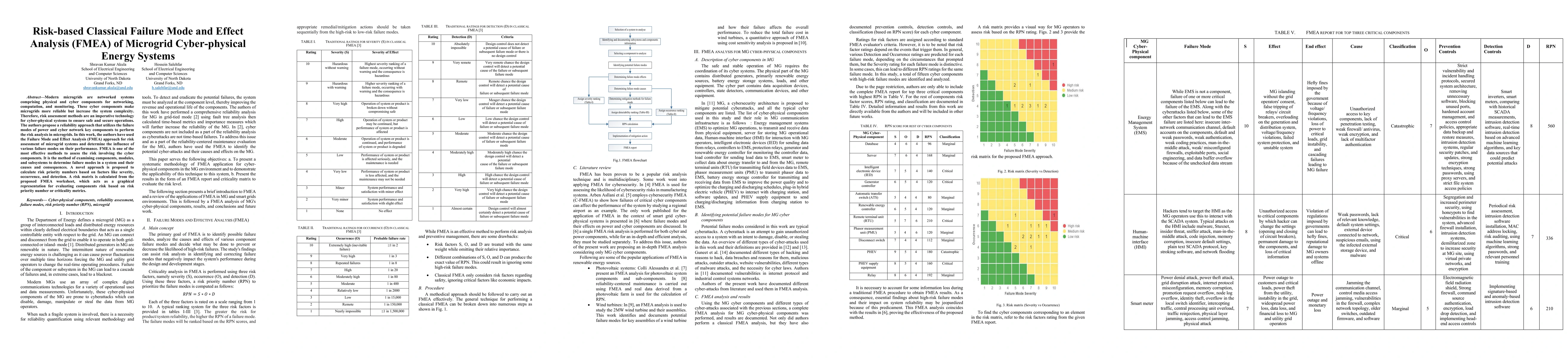 This paper proposes a risk-based Classical Failure Mode and Effect Analysis (FMEA) for assessing the reliability of microgrid cyber-physical energy systems, focusing on the failure modes of key power and cyber network components. The authors introduce a novel method to calculate risk priority numbers and utilize a risk matrix for evaluating component criticality.