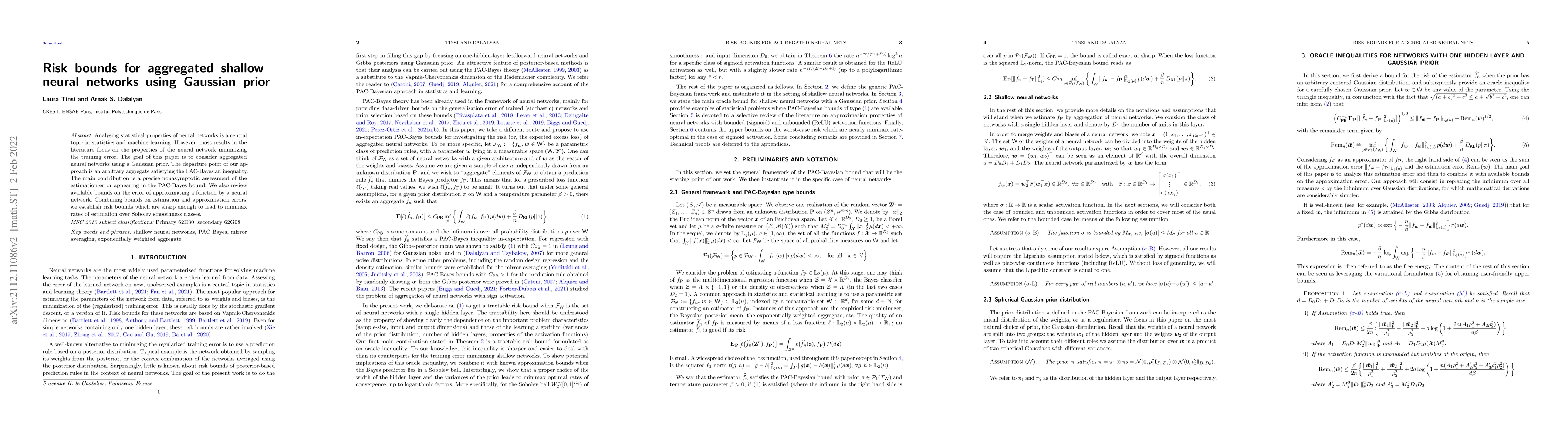 This paper investigates the statistical properties of aggregated shallow neural networks using a Gaussian prior, focusing on nonasymptotic risk bounds. It establishes precise bounds on the estimation error within the PAC-Bayesian framework, leading to minimax rates of estimation over Sobolev smoothness classes.