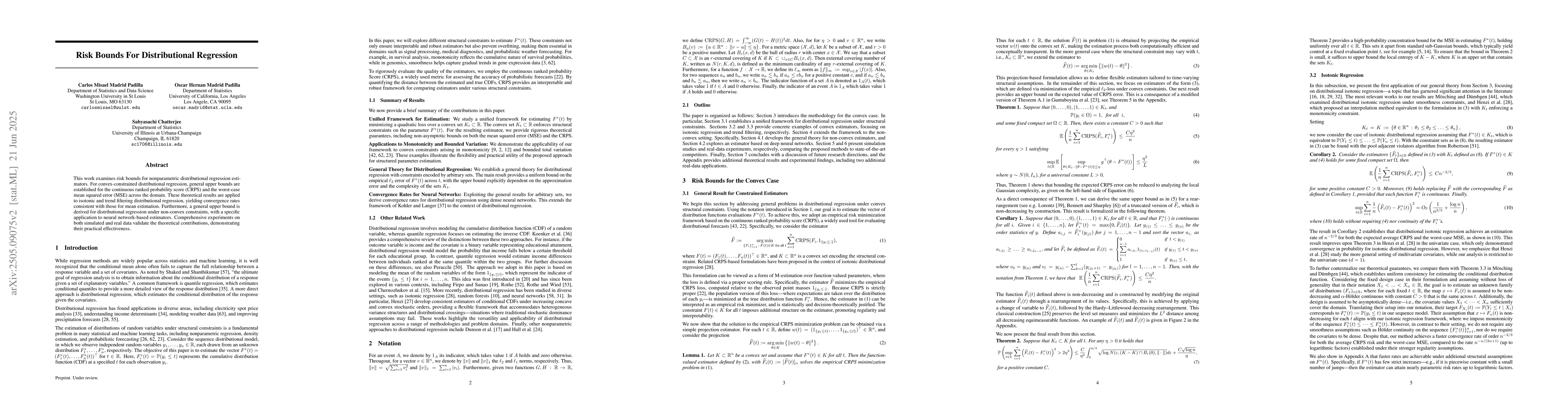 This research extends prior work by providing comprehensive risk bounds for both convex-constrained and non-convex distributional regression, including specific applications to isotonic, trend filtering, and neural network-based estimators.