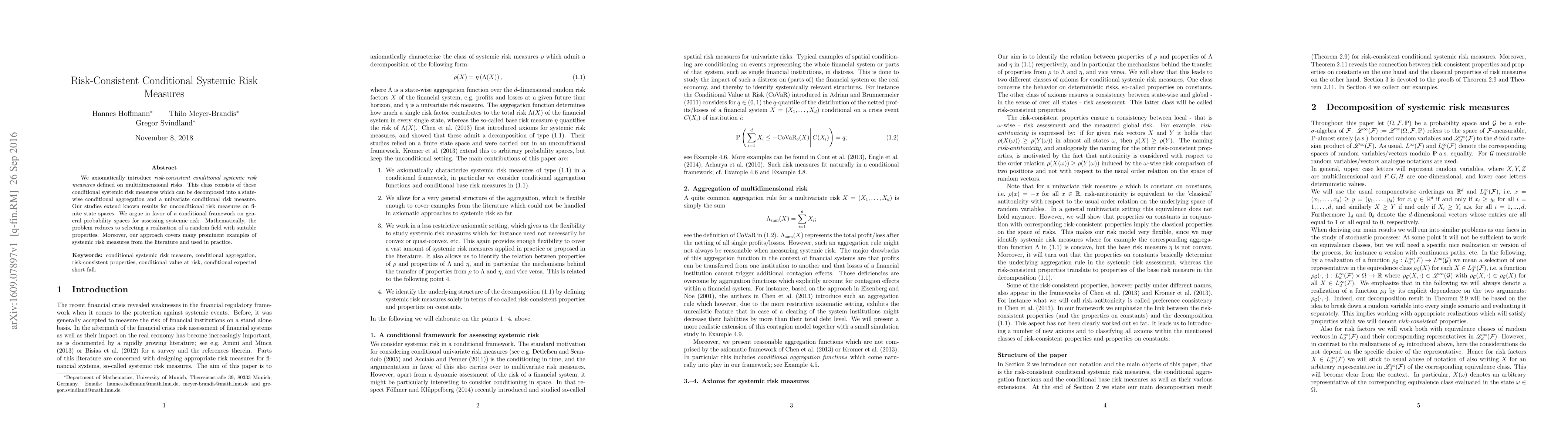 The paper introduces risk-consistent conditional systemic risk measures (CSRMs) defined on multidimensional risks, extending known results for unconditional risk measures on finite state spaces to a general probability space framework.