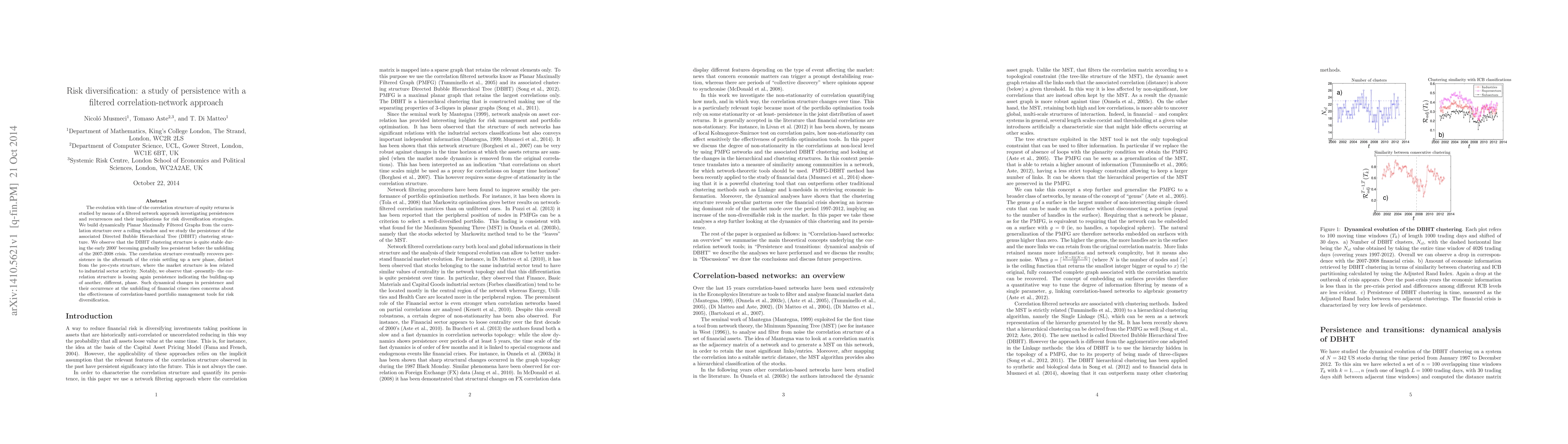 The evolution with time of the correlation structure of equity returns is studied by means of a filtered network approach investigating persistences and recurrences and their implications for risk diversification strategies. We build dynamically Planar Maximally Filtered Graphs from the correlation structure over a rolling window and we study the persistence of the associated Directed Bubble Hierarchical Tree (DBHT) clustering structure. We observe that the DBHT clustering structure is quite stable during the early 2000' becoming gradually less persistent before the unfolding of the 2007-2008 crisis. The correlation structure eventually recovers persistence in the aftermath of the crisis settling up a new phase, distinct from the pre-cysts structure, where the market structure is less related to industrial sector activity. Notably, we observe that - presently - the correlation structure is loosing again persistence indicating the building-up of another, different, phase. Such dynamical changes in persistence and their occurrence at the unfolding of financial crises rises concerns about the effectiveness of correlation-based portfolio management tools for risk diversification.