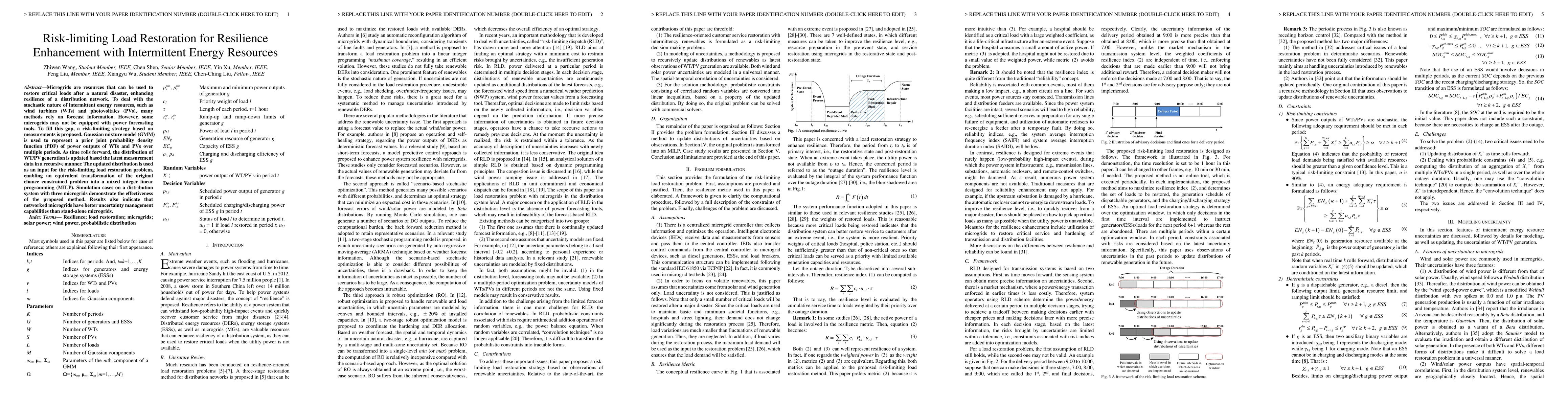 This paper proposes a risk-limiting strategy for microgrids to restore critical loads after natural disasters, using measurements instead of forecasts for intermittent energy resources. It employs a Gaussian mixture model to update the probability distribution of wind and solar power outputs, transforming the chance-constrained problem into a mixed integer linear programming model, which enhances microgrid resilience.