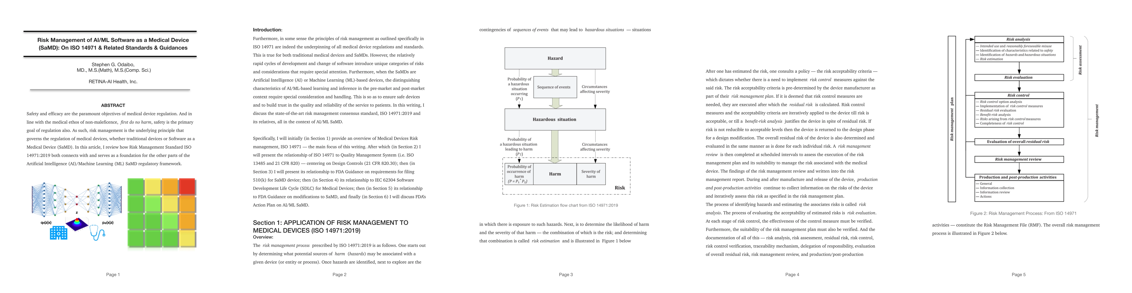 Safety and efficacy are the paramount objectives of medical device regulation. And in line with the medical ethos of non-maleficence, first do no harm, safety is the primary goal of regulation also. As such, risk management is the underlying principle that governs the regulation of medical devices, whether traditional devices or Software as a Medical Device (SaMD). In this article, I review how Risk Management Standard ISO 14971:2019 both connects with and serves as a foundation for the other parts of the Artificial Intelligence (AI)/Machine Learning (ML) SaMD regulatory framework.