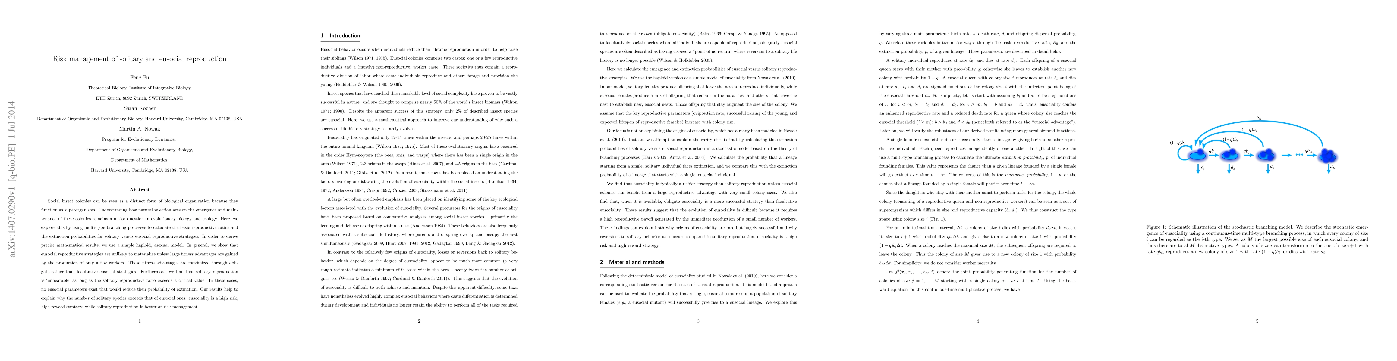 Social insect colonies can be seen as a distinct form of biological organization because they function as superorganisms. Understanding how natural selection acts on the emergence and maintenance of these colonies remains a major question in evolutionary biology and ecology. Here, we explore this by using multi-type branching processes to calculate the basic reproductive ratios and the extinction probabilities for solitary versus eusocial reproductive strategies. In order to derive precise mathematical results, we use a simple haploid, asexual model. In general, we show that eusocial reproductive strategies are unlikely to materialize unless large fitness advantages are gained by the production of only a few workers. These fitness advantages are maximized through obligate rather than facultative eusocial strategies. Furthermore, we find that solitary reproduction is `unbeatable' as long as the solitary reproductive ratio exceeds a critical value. In these cases, no eusocial parameters exist that would reduce their probability of extinction. Our results help to explain why the number of solitary species exceeds that of eusocial ones: eusociality is a high risk, high reward strategy, while solitary reproduction is better at risk management.