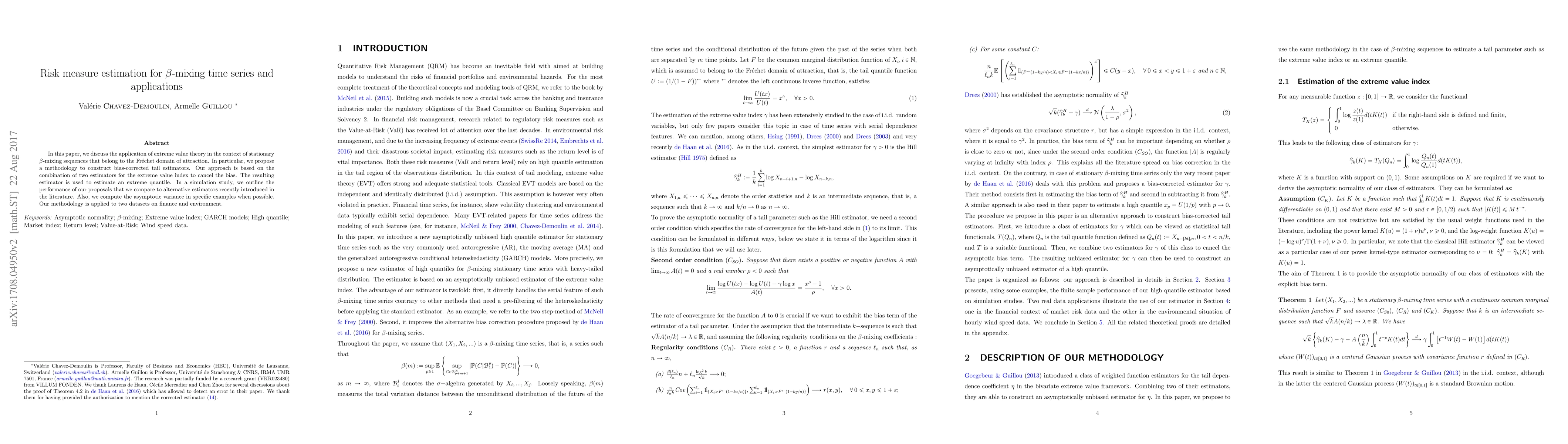 In this paper, we discuss the application of extreme value theory in the context of stationary $\beta$-mixing sequences that belong to the Fr\'echet domain of attraction. In particular, we propose a methodology to construct bias-corrected tail estimators. Our approach is based on the combination of two estimators for the extreme value index to cancel the bias. The resulting estimator is used to estimate an extreme quantile. In a simulation study, we outline the performance of our proposals that we compare to alternative estimators recently introduced in the literature. Also, we compute the asymptotic variance in specific examples when possible. Our methodology is applied to two datasets on finance and environment.