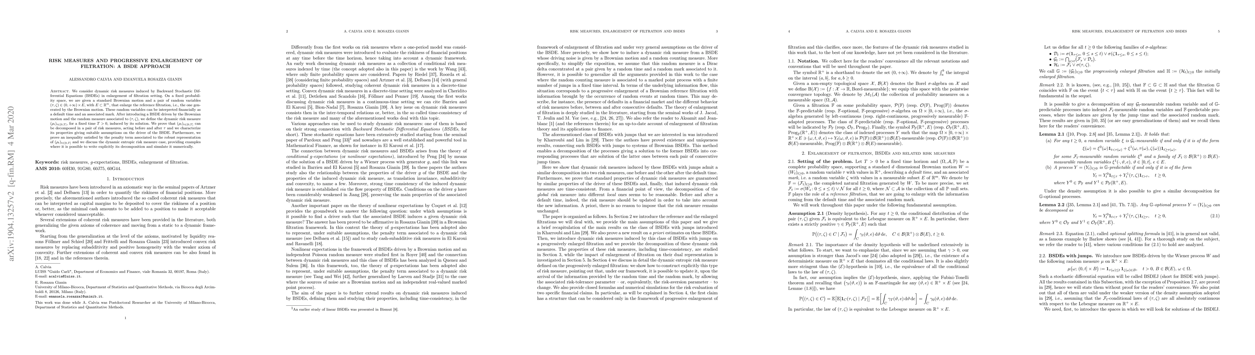 This paper explores dynamic risk measures defined via Backward Stochastic Differential Equations (BSDEs) in an enlargement of filtration framework. It decomposes the dynamic risk measure into pre- and post-default components and characterizes its properties under specific assumptions.