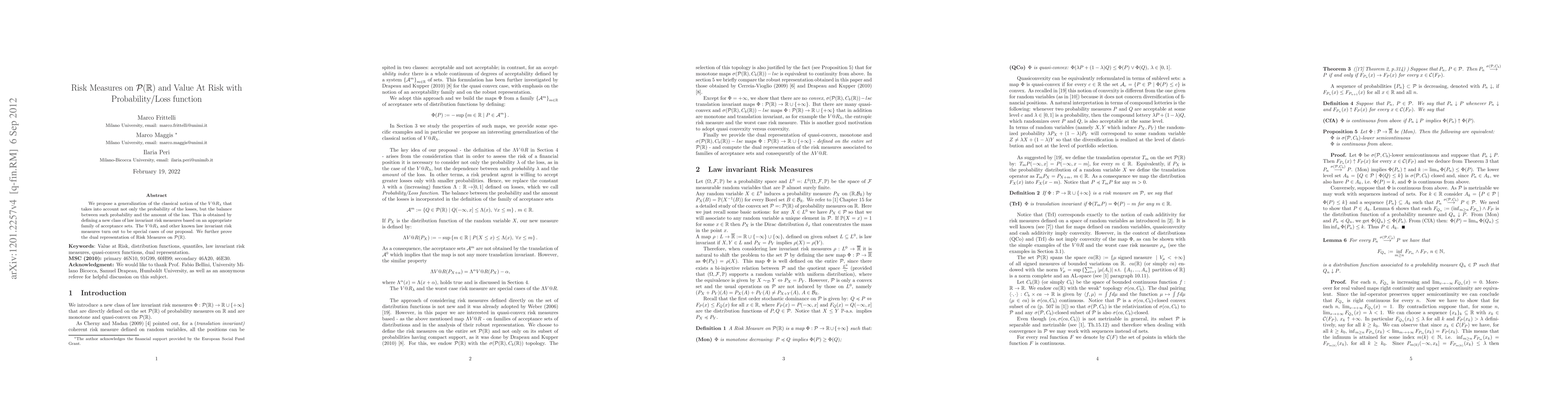 We propose a generalization of the classical notion of the $V@R_{\lambda}$ that takes into account not only the probability of the losses, but the balance between such probability and the amount of the loss. This is obtained by defining a new class of law invariant risk measures based on an appropriate family of acceptance sets. The $V@R_{\lambda}$ and other known law invariant risk measures turn out to be special cases of our proposal. We further prove the dual representation of Risk Measures on $\mathcal{P}(% \mathbb{R}).$
