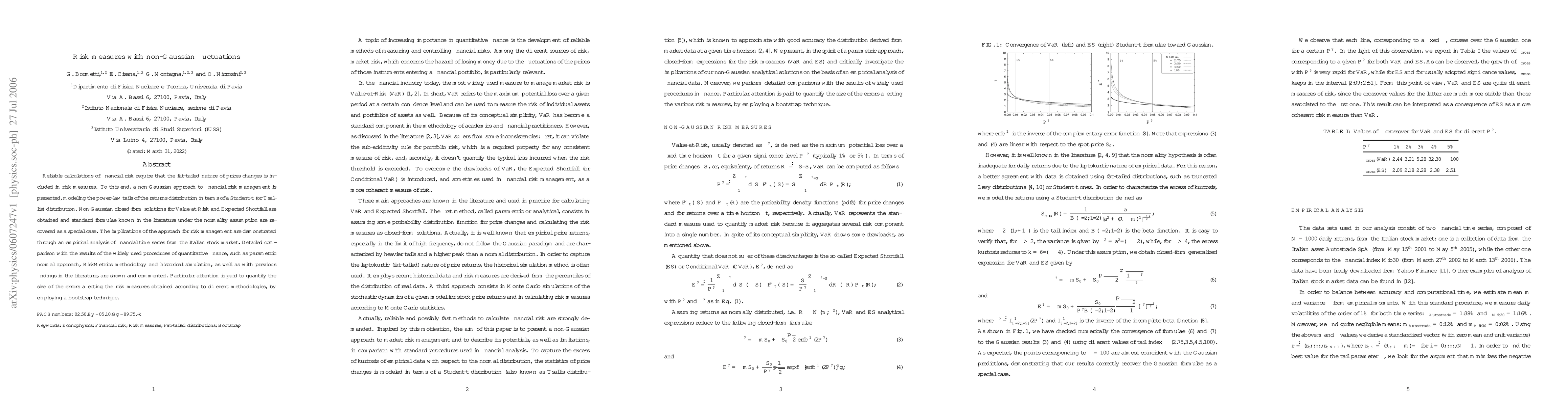 This paper proposes a non-Gaussian approach to financial risk management using Student-$t$ or Tsallis distributions to model fat-tailed returns, deriving closed-form solutions for Value-at-Risk and Expected Shortfall. An empirical analysis of Italian stock market data demonstrates the approach's effectiveness and quantifies errors compared to traditional methods.