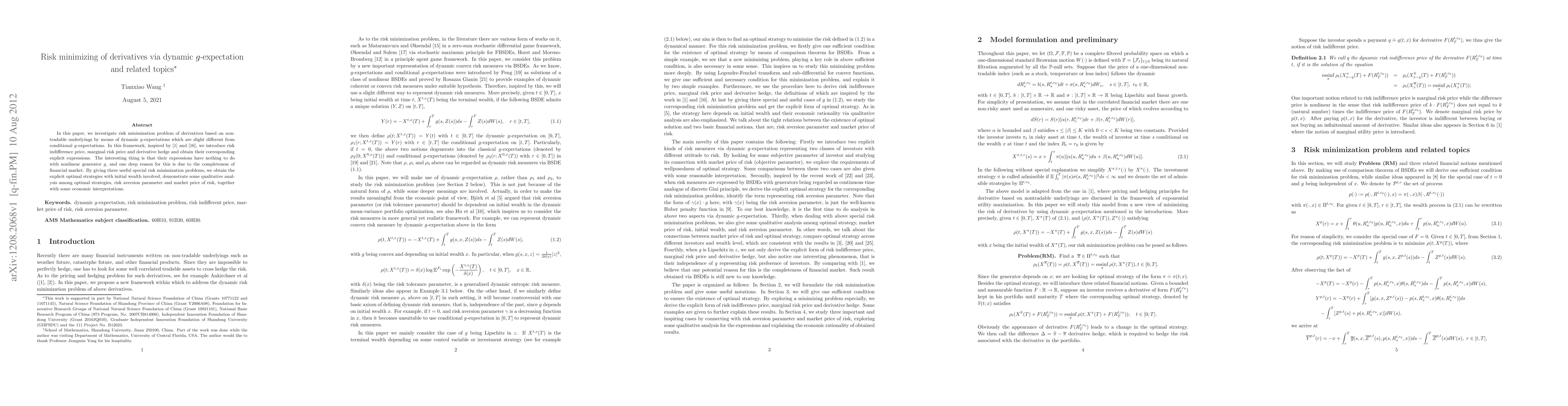 This paper explores risk minimization for derivatives with non-tradable underlyings using dynamic g-expectations, introducing risk indifference price, marginal risk price, and derivative hedge. Notably, the derived expressions are independent of the nonlinear generator g, attributed to the completeness of the financial market.