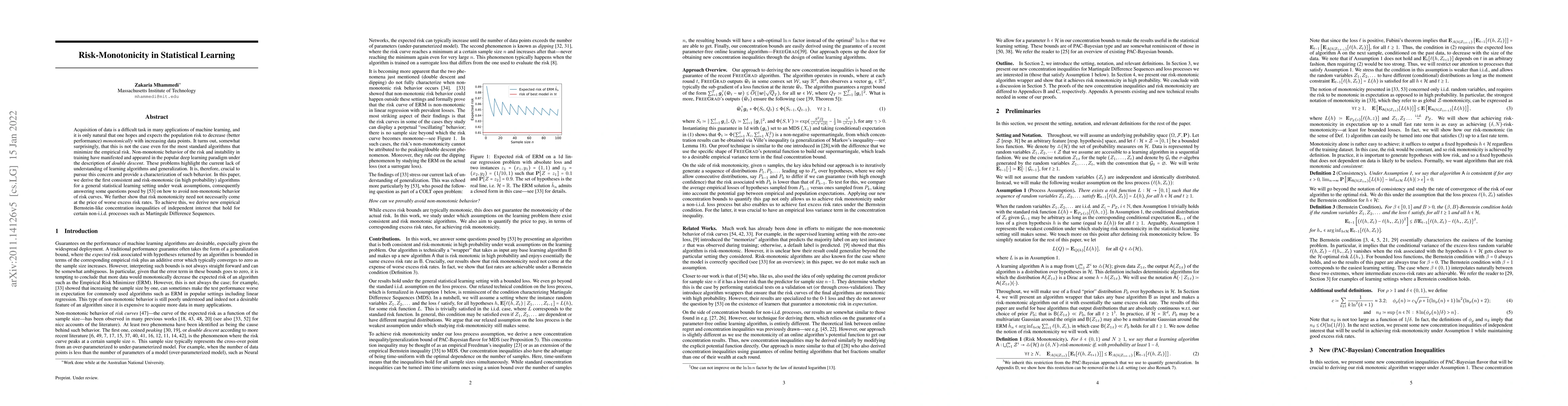 Acquisition of data is a difficult task in many applications of machine learning, and it is only natural that one hopes and expects the population risk to decrease (better performance) monotonically with increasing data points. It turns out, somewhat surprisingly, that this is not the case even for the most standard algorithms that minimize the empirical risk. Non-monotonic behavior of the risk and instability in training have manifested and appeared in the popular deep learning paradigm under the description of double descent. These problems highlight the current lack of understanding of learning algorithms and generalization. It is, therefore, crucial to pursue this concern and provide a characterization of such behavior. In this paper, we derive the first consistent and risk-monotonic (in high probability) algorithms for a general statistical learning setting under weak assumptions, consequently answering some questions posed by Viering et al. 2019 on how to avoid non-monotonic behavior of risk curves. We further show that risk monotonicity need not necessarily come at the price of worse excess risk rates. To achieve this, we derive new empirical Bernstein-like concentration inequalities of independent interest that hold for certain non-i.i.d.~processes such as Martingale Difference Sequences.