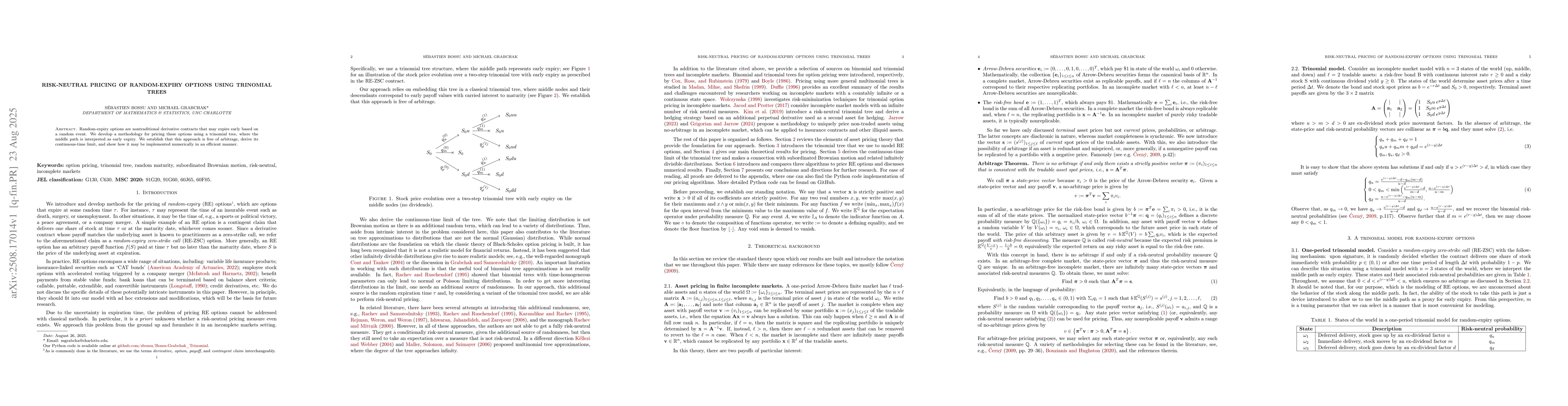 Random-expiry options are nontraditional derivative contracts that may expire early based on a random event. We develop a methodology for pricing these options using a trinomial tree, where the middle path is interpreted as early expiry. We establish that this approach is free of arbitrage, derive its continuous-time limit, and show how it may be implemented numerically in an efficient manner.