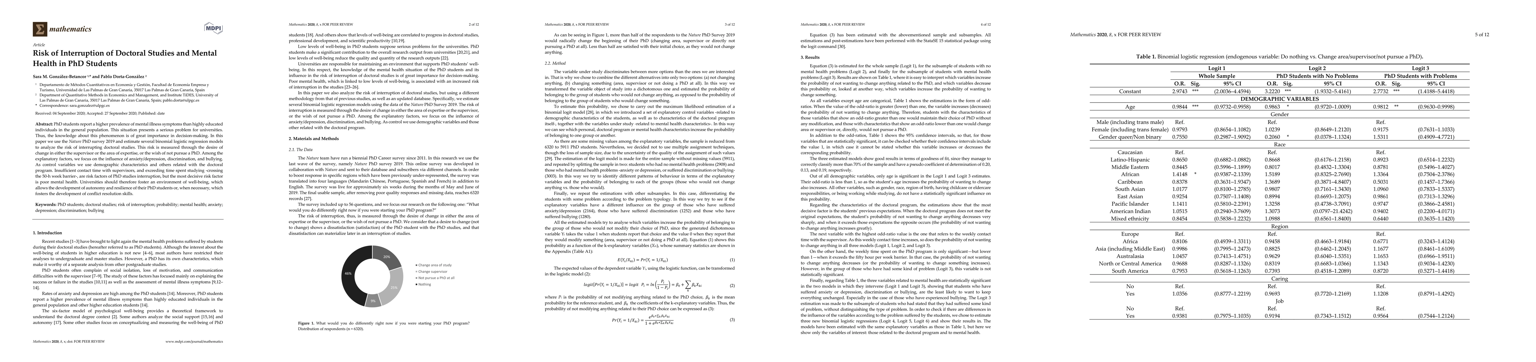This study investigates the risk of doctoral students interrupting their studies, finding that poor mental health is the most decisive factor, followed by insufficient contact with supervisors and excessive study hours. Universities are urged to promote mental well-being and resilience among PhD students to mitigate these risks.