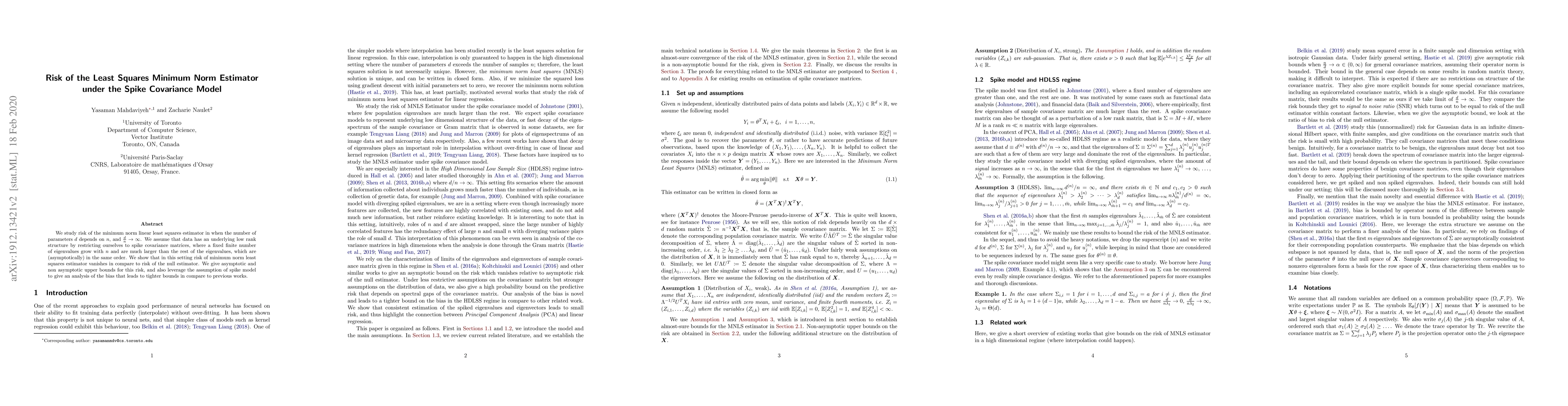 This paper investigates the risk of the minimum norm linear least squares estimator under the spike covariance model, where the number of parameters grows with the sample size. It demonstrates that the risk of this estimator diminishes compared to the null estimator, providing both asymptotic and non-asymmetric upper bounds, and leveraging the spike model to achieve tighter bias analysis than previous studies.