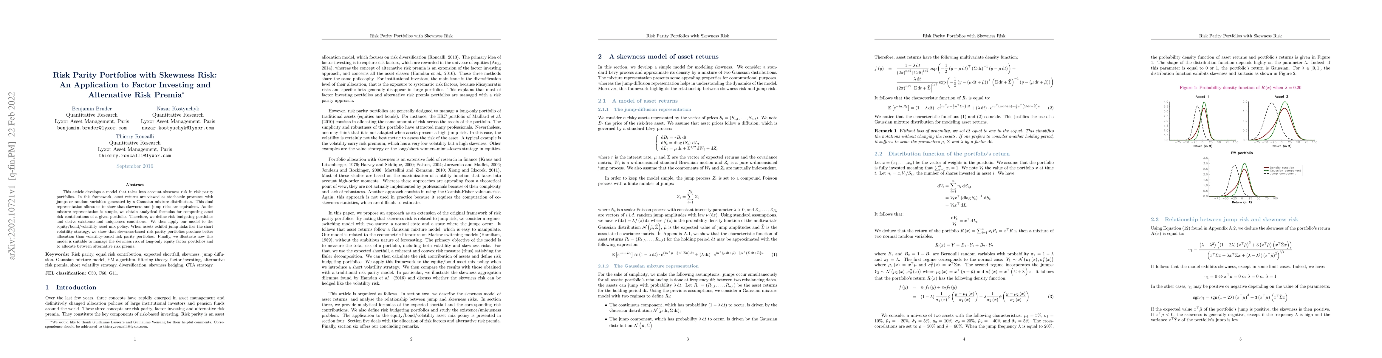 This paper introduces a risk parity portfolio model that incorporates skewness risk, showing skewness and jump risks are equivalent. It provides analytical formulas for risk budgeting and demonstrates superior allocation performance in strategies like short volatility compared to traditional volatility-based approaches.