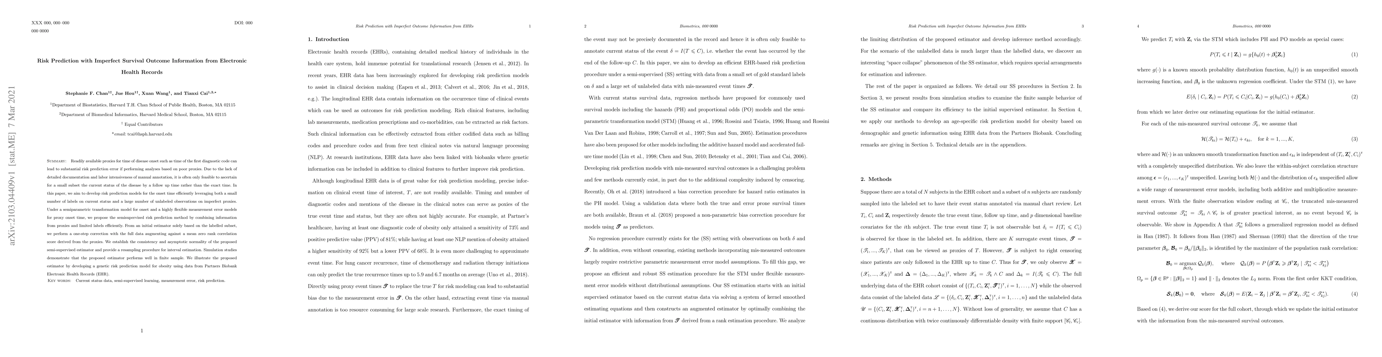 This paper develops a semi-supervised risk prediction method to efficiently leverage imperfect proxies and limited labels from electronic health records. The proposed method corrects initial estimates using a mean zero rank correlation score derived from proxies, demonstrating consistency and asymptotic normality, and is illustrated with a genetic risk model for obesity.