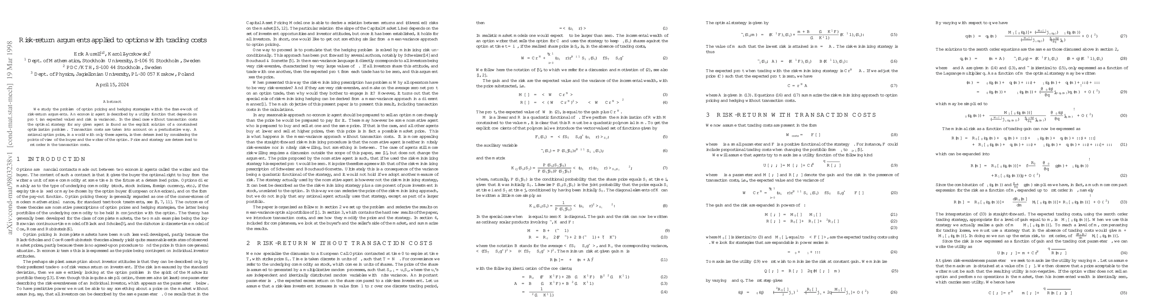 This research paper studies how options pricing and hedging strategies work within risk-return frameworks, considering transaction costs for optimal price determination. It provides a framework to understand option prices in a world with agents who weigh profit and risk equally.