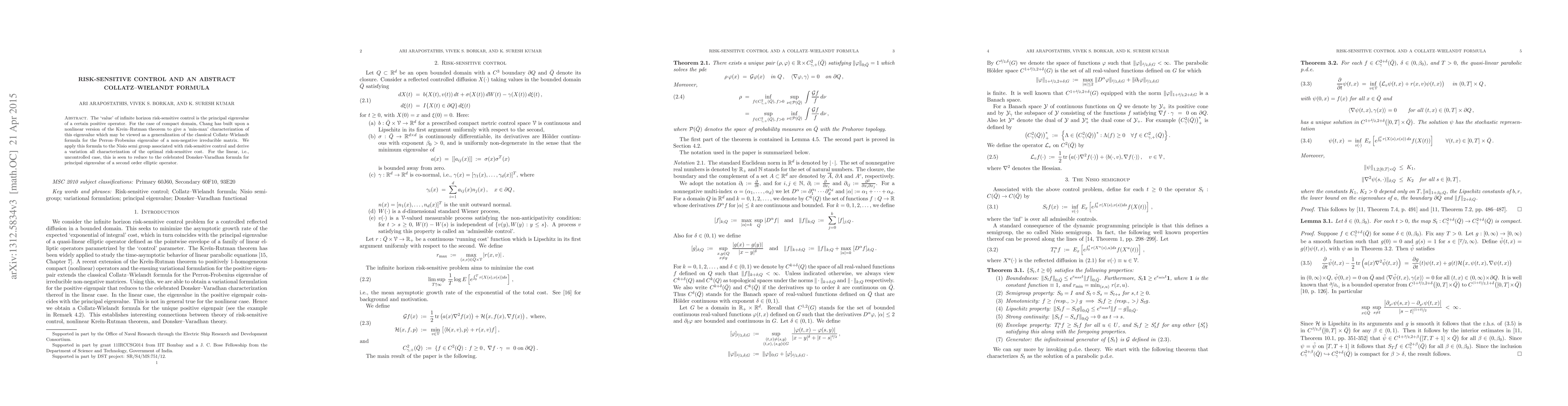 The "value" of infinite horizon risk-sensitive control is the principal eigenvalue of a certain positive operator. This facilitates the use of Chang's extension of the Collatz-Wielandt formula to derive a variational characterization thereof. For the uncontrolled case, this reduces to the Donsker-Varadhan functional.