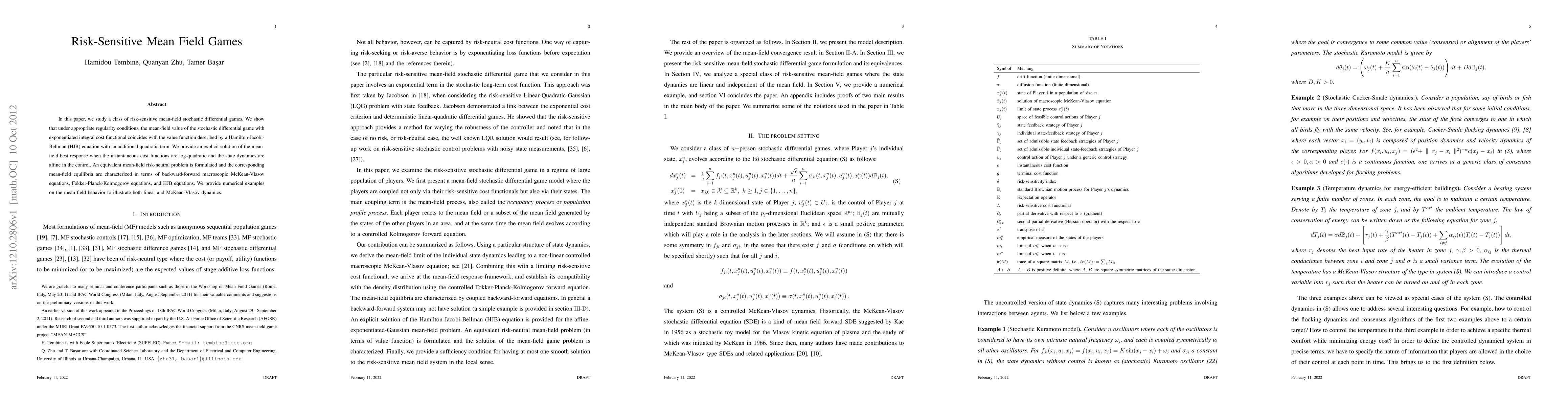 The paper studies risk-sensitive mean-field stochastic differential games, showing that the mean-field value coincides with a HJB equation including an additional quadratic term under regularity conditions. It provides explicit solutions for best responses and formulates an equivalent risk-neutral problem.