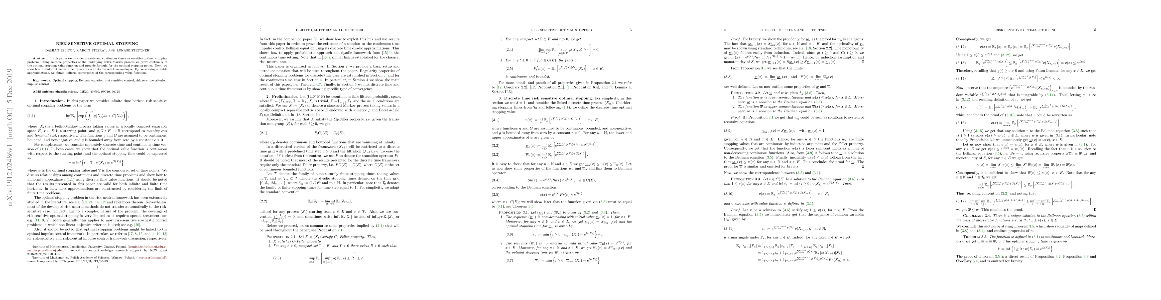 Summary: This paper addresses risk-sensitive optimal stopping problems in both discrete and continuous time, proving the continuity of the optimal stopping value function and deriving a formula for the optimal stopping policy. It also demonstrates the uniform convergence between continuous and discrete time frameworks through suitable approximations.