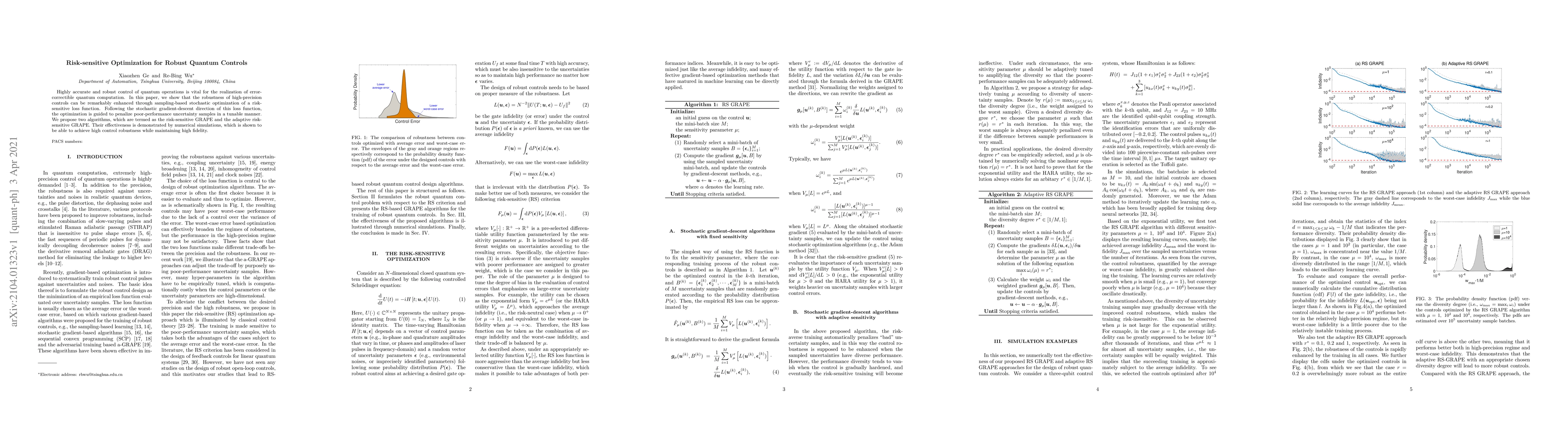 This paper introduces a new method to improve the robustness of quantum control operations through risk-sensitive optimization, achieving high fidelity while maintaining high control robustness in numerical simulations.