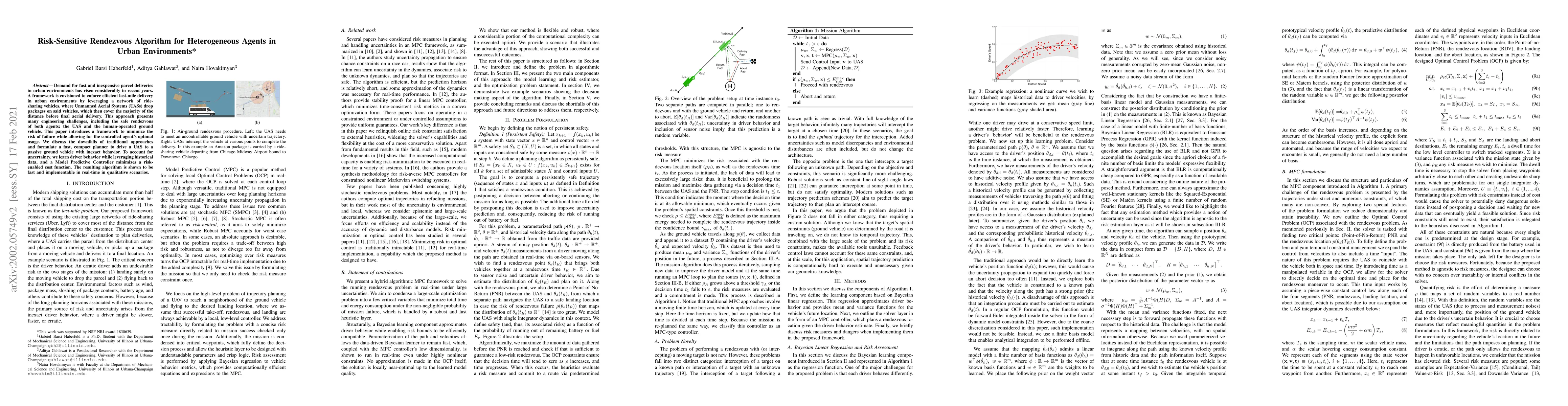 This paper proposes a risk-sensitive rendezvous algorithm to optimize last-mile delivery in urban environments by coordinating Unmanned Aerial Systems (UASs) with ride-sharing vehicles. The algorithm ensures safe interactions and efficient delivery while minimizing the risk of failure and maintaining optimal performance.