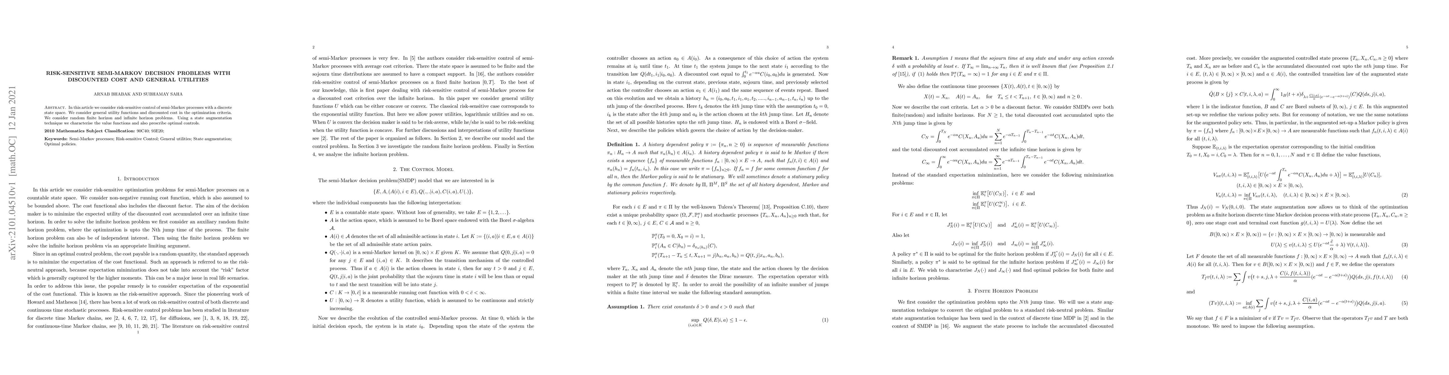 This paper studies risk-sensitive control of semi-Markov processes with general utility functions and discounted costs, addressing both finite and infinite horizon scenarios. It characterizes value functions and prescribes optimal controls using state augmentation techniques.