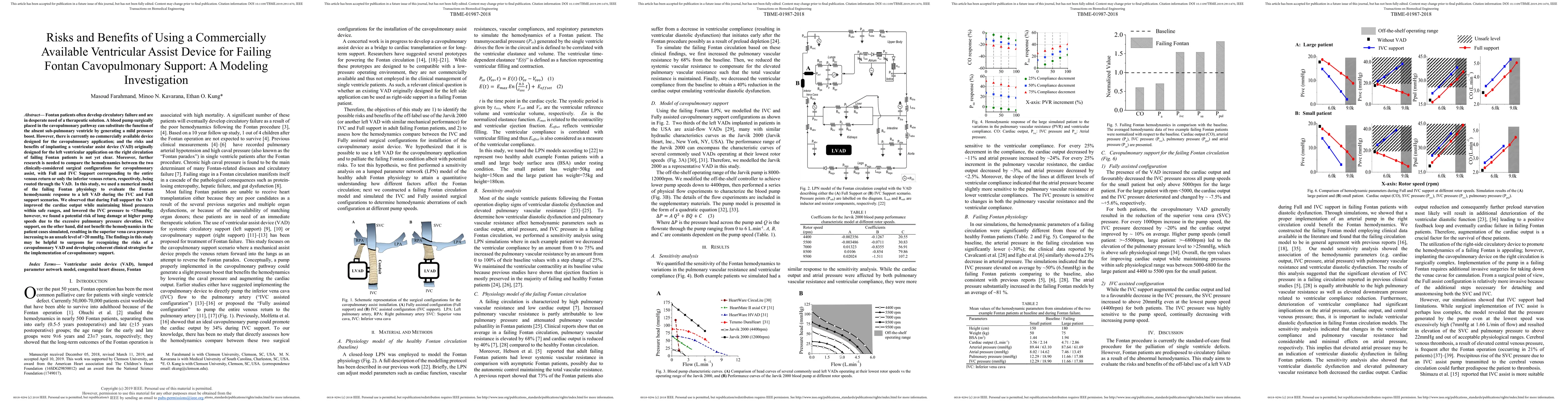 This study models the hemodynamic effects of a commercially available left ventricular assist device (VAD) on failing Fontan patients, finding that Full Support improves cardiac output but risks lung damage at high speeds, while IVC Support fails to benefit hemodynamics.
