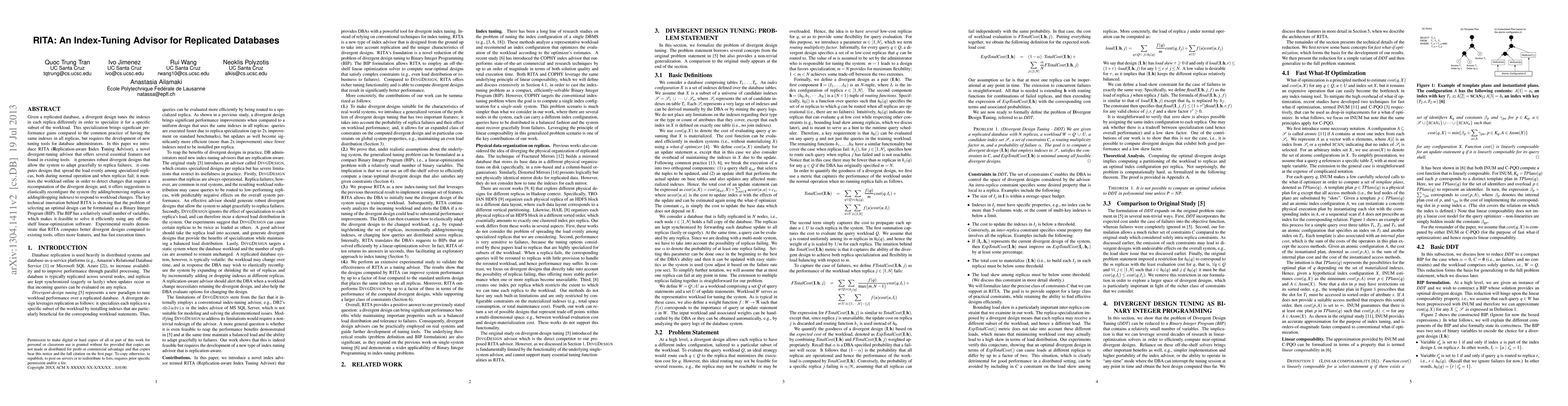Given a replicated database, a divergent design tunes the indexes in each replica differently in order to specialize it for a specific subset of the workload. This specialization brings significant performance gains compared to the common practice of having the same indexes in all replicas, but requires the development of new tuning tools for database administrators. In this paper we introduce RITA (Replication-aware Index Tuning Advisor), a novel divergent-tuning advisor that offers several essential features not found in existing tools: it generates robust divergent designs that allow the system to adapt gracefully to replica failures; it computes designs that spread the load evenly among specialized replicas, both during normal operation and when replicas fail; it monitors the workload online in order to detect changes that require a recomputation of the divergent design; and, it offers suggestions to elastically reconfigure the system (by adding/removing replicas or adding/dropping indexes) to respond to workload changes. The key technical innovation behind RITA is showing that the problem of selecting an optimal design can be formulated as a Binary Integer Program (BIP). The BIP has a relatively small number of variables, which makes it feasible to solve it efficiently using any off-the-shelf linear-optimization software. Experimental results demonstrate that RITA computes better divergent designs compared to existing tools, offers more features, and has fast execution times.