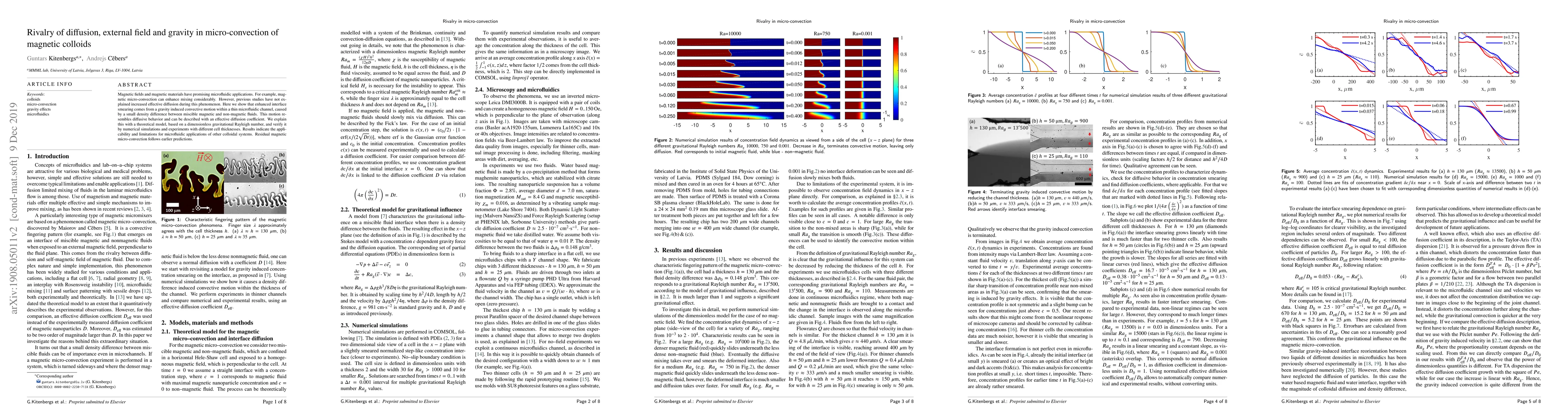 Magnetic colloids exhibit enhanced effective diffusion due to gravity-induced convective motion in microfluidic channels with small density differences between miscible fluids. This phenomenon can be described by a dimensionless gravitational Rayleigh number and has implications for microfluidic applications.