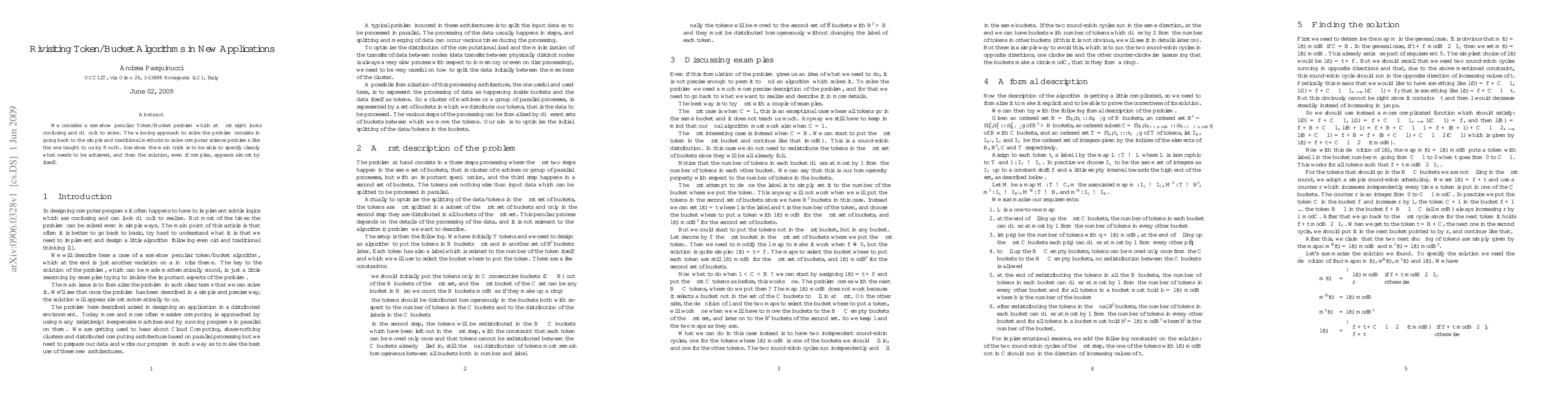 This paper revisits the Token/Bucket algorithms for a challenging new application, emphasizing the value of traditional computer science methods, notably those inspired by Knuth, to achieve clear problem specification and solution. The complexity of the problem is addressed by breaking it down into manageable parts, leading to a successful resolution.