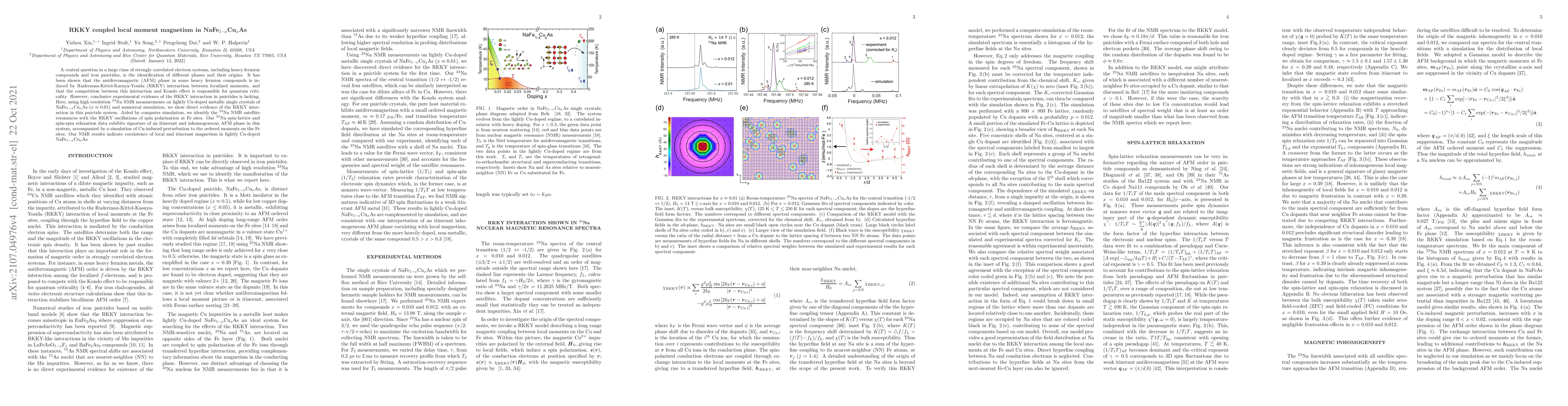 This paper provides direct evidence of RKKY interaction in NaFe$_{1-x}$Cu$_{x}$As via high-resolution $^{23}$Na NMR measurements, revealing the coexistence of local and itinerant magnetism in lightly Cu-doped samples. The study identifies RKKY-induced antiferromagnetic phase and demonstrates the competition between RKKY interaction and Kondo effect.