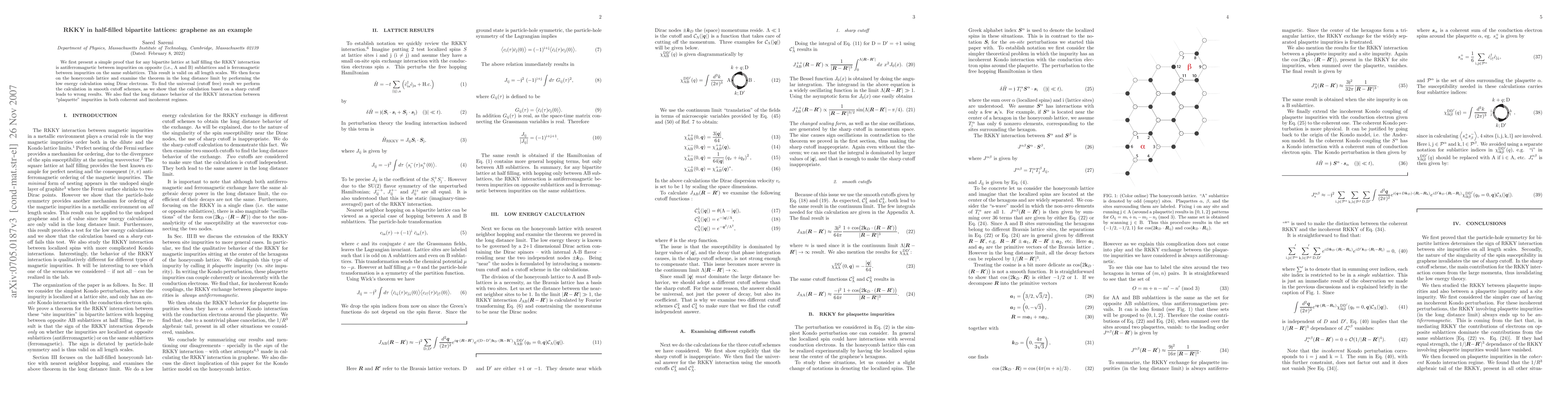 This paper proves that the RKKY interaction between impurities in a half-filled bipartite lattice is antiferromagnetic when on opposite sublattices and ferromagnetic when on the same sublattice. It also studies this interaction in graphene using Dirac electrons, finding universal results for long-distance behavior.