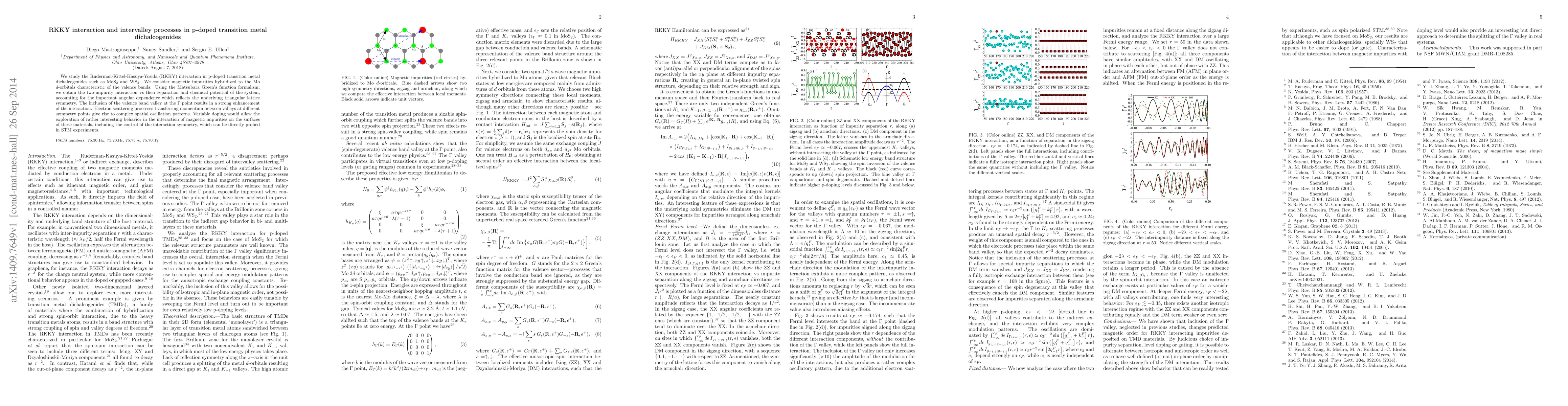 Researchers study the Ruderman-Kittel-Kasuya-Yosida interaction in p-doped transition metal dichalcogenides like MoS2 and WS2, finding strong enhancement with valence band valley at the ε point. This work has implications for controlling magnetic impurity interactions via STM experiments.