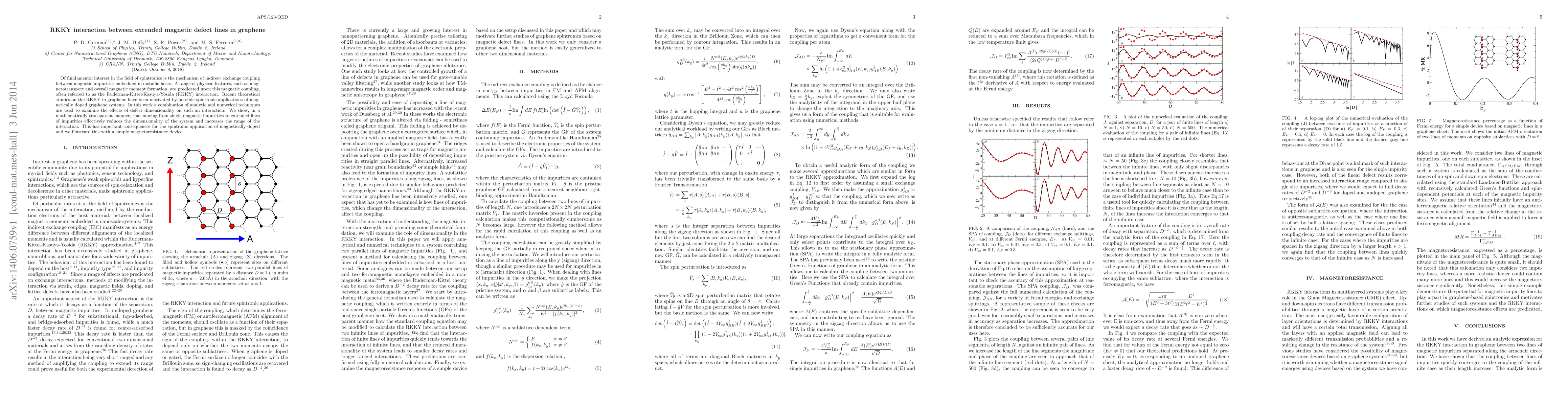 Of fundamental interest in the field of spintronics is the mechanism of indirect exchange coupling between magnetic impurities embedded in metallic hosts. A range of physical features, such as magnetotransport and overall magnetic moment formation, are predicated upon this magnetic coupling, often referred to as the Ruderman-Kittel-Kasuya-Yosida (RKKY) interaction. Recent theoretical studies on the RKKY in graphene have been motivated by possible spintronic applications of magnetically doped graphene systems. In this work a combination of analytic and numerical techniques are used to examine the effects of defect dimensionality on such an interaction. We show, in a mathematically transparent manner, that moving from single magnetic impurities to extended lines of impurities effectively reduces the dimensionality of the system and increases the range of the interaction. This has important consequences for the spintronic application of magnetically-doped and we illustrate this with a simple magnetoresistance device.