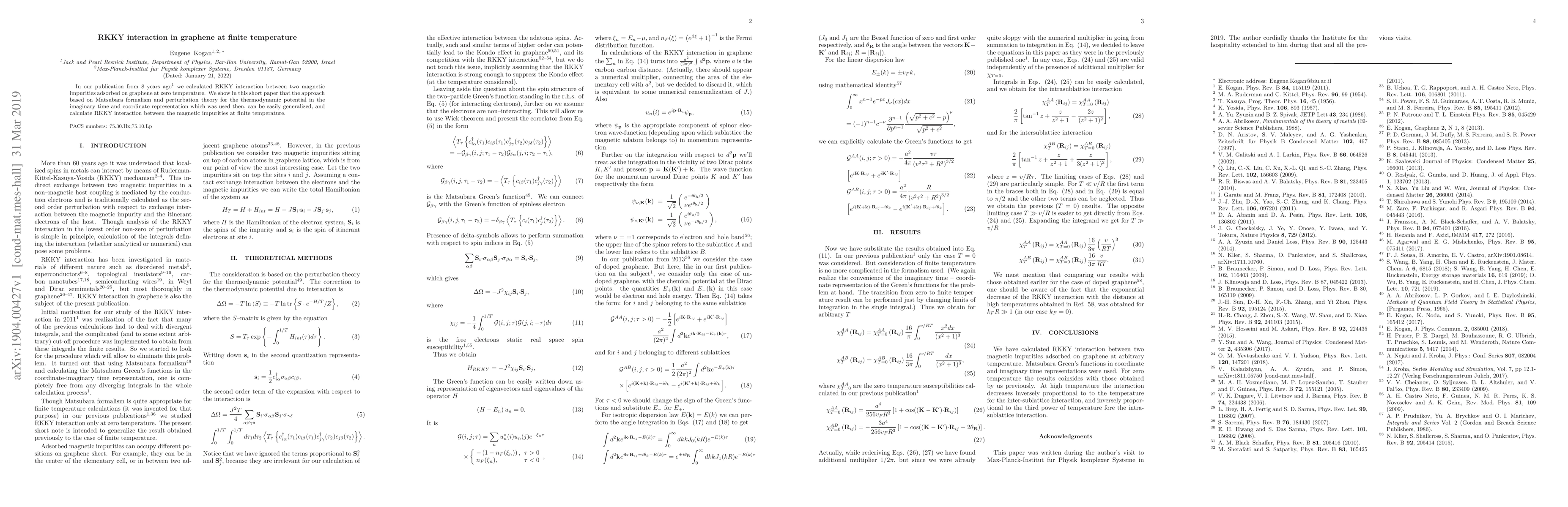 This paper extends previous work on RKKY interaction in graphene to finite temperatures, applying Matsubara formalism and perturbation theory to determine the interaction between magnetic impurities adsorbed on graphene at non-zero temperatures.