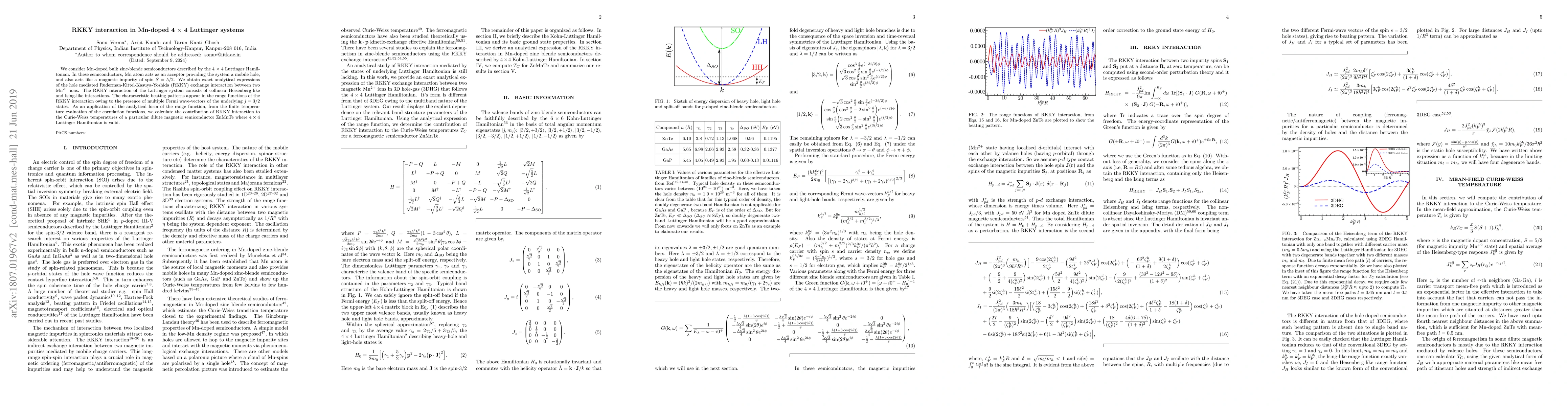 Researchers derived exact analytical expressions for the RKKY exchange interaction in Mn-doped 4x4 Luttinger systems, revealing a mix of collinear Heisenberg-like and Ising-like interactions with characteristic beating patterns.