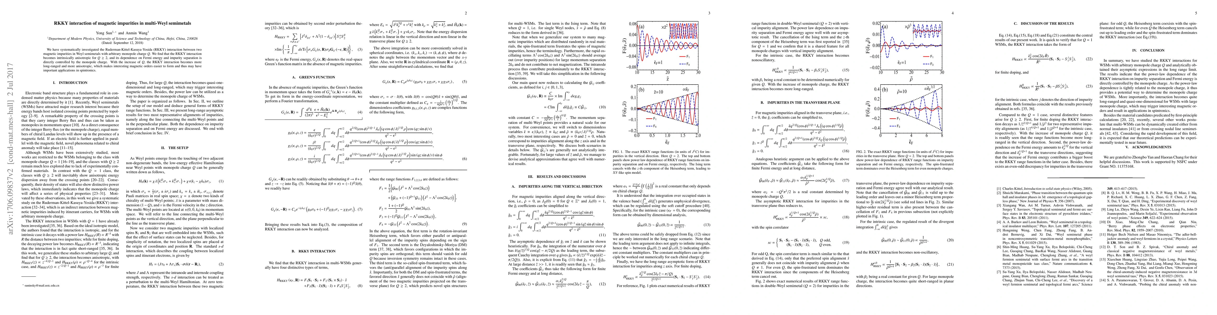 This study investigates the RKKY interaction between magnetic impurities in Weyl semimetals, revealing that for monopole charge $Q\geq2$, the interaction becomes anisotropic and long-ranged, significantly influencing magnetic order formation and potential spintronics applications.