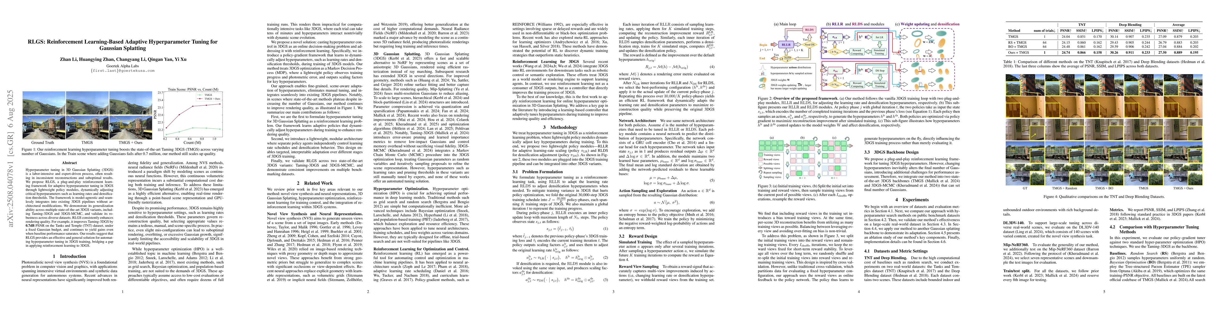 Hyperparameter tuning in 3D Gaussian Splatting (3DGS) is a labor-intensive and expert-driven process, often resulting in inconsistent reconstructions and suboptimal results. We propose RLGS, a plug-and-play reinforcement learning framework for adaptive hyperparameter tuning in 3DGS through lightweight policy modules, dynamically adjusting critical hyperparameters such as learning rates and densification thresholds. The framework is model-agnostic and seamlessly integrates into existing 3DGS pipelines without architectural modifications. We demonstrate its generalization ability across multiple state-of-the-art 3DGS variants, including Taming-3DGS and 3DGS-MCMC, and validate its robustness across diverse datasets. RLGS consistently enhances rendering quality. For example, it improves Taming-3DGS by 0.7dB PSNR on the Tanks and Temple (TNT) dataset, under a fixed Gaussian budget, and continues to yield gains even when baseline performance saturates. Our results suggest that RLGS provides an effective and general solution for automating hyperparameter tuning in 3DGS training, bridging a gap in applying reinforcement learning to 3DGS.