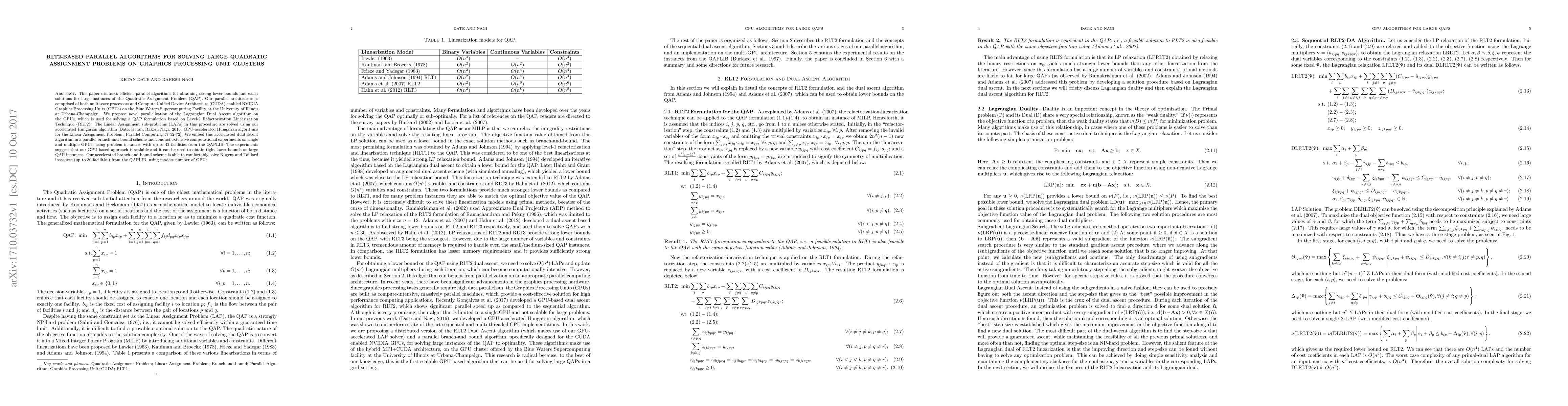 This paper presents parallel algorithms leveraging both multi-core processors and GPUs to solve large Quadratic Assignment Problems (QAP) using the RLT2 technique. The proposed GPU-based parallelization of the Lagrangian Dual Ascent algorithm, combined with an accelerated Hungarian algorithm, demonstrates scalability and efficiency in solving QAPLIB instances up to 42 facilities.
