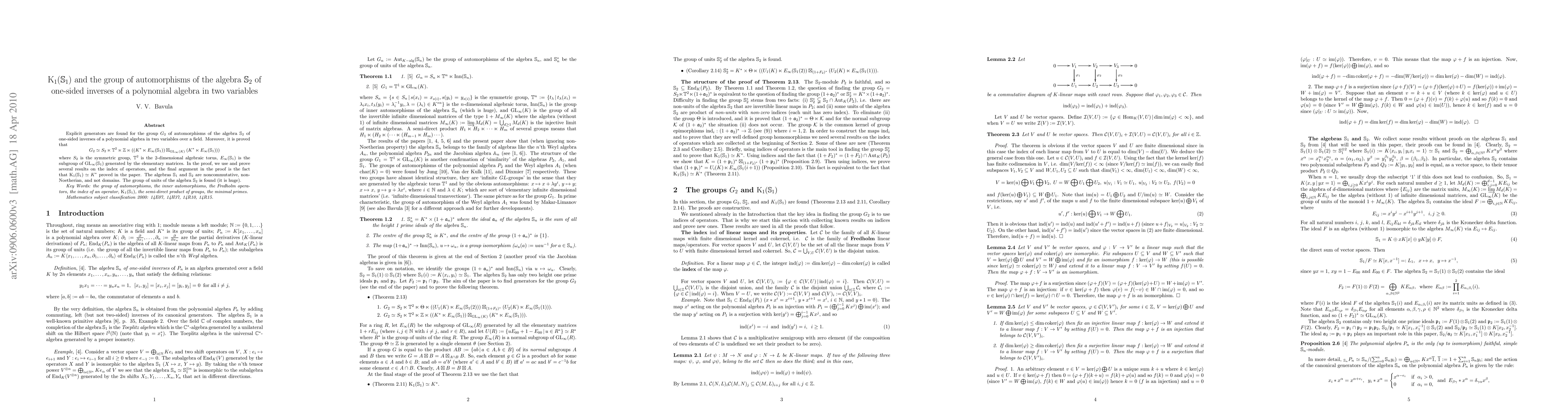 Explicit generators are found for the group $G_2$ of automorphisms of the algebra $\mS_2$ of one-sided inverses of a polynomial algebra in two variables over a field of characteristic zero. Moreover, it is proved that $$ G_2\simeq S_2\ltimes \mT^2\ltimes \Z\ltimes ((K^*\ltimes E_\infty (\mS_1))\boxtimes_{\GL_\infty (K)}(K^*\ltimes E_\infty (\mS_1)))$$ where $S_2$ is the symmetric group, $\mT^2$ is the 2-dimensional torus, $E_\infty (\mS_1)$ is the subgroup of $\GL_\infty (\mS_1)$ generated by the elementary matrices. In the proof, we use and prove several results on the index of operators, and the final argument in the proof is the fact that ${\rm K}_1 (\mS_1) \simeq K^*$ proved in the paper. The algebras $\mS_1$ and $\mS_2$ are noncommutative, non-Noetherian, and not domains. The group of units of the algebra $\mS_2$ is found (it is huge).