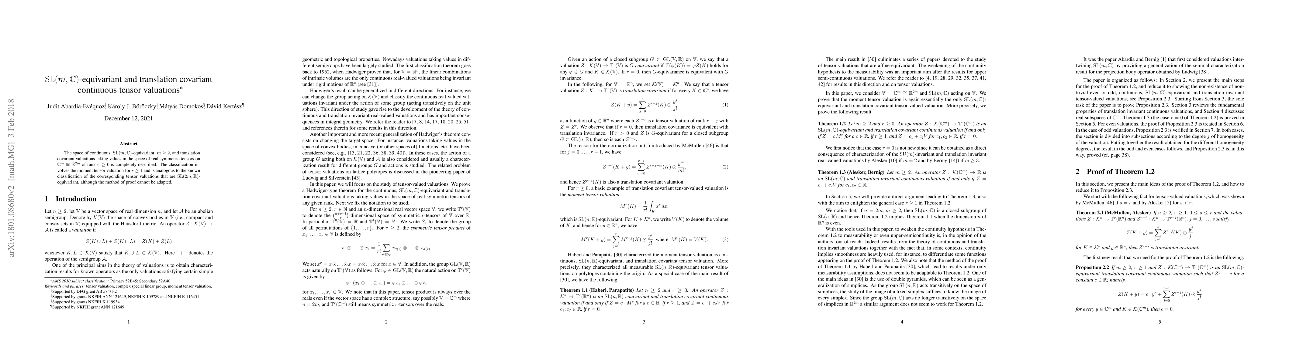 The space of continuous, ${\rm SL}(m,C)$-equivariant, $m\geq 2$, and translation covariant valuations taking values in the space of real symmetric tensors on $C^m\cong R^{2m}$ of rank $r\geq 0$ is completely described. The classification involves the moment tensor valuation for $r\geq 1$ and is analogous to the classification of the corresponding tensor valuations that are ${\rm SL}(2m,R)$-equivariant, although the method of proof cannot be adapted.