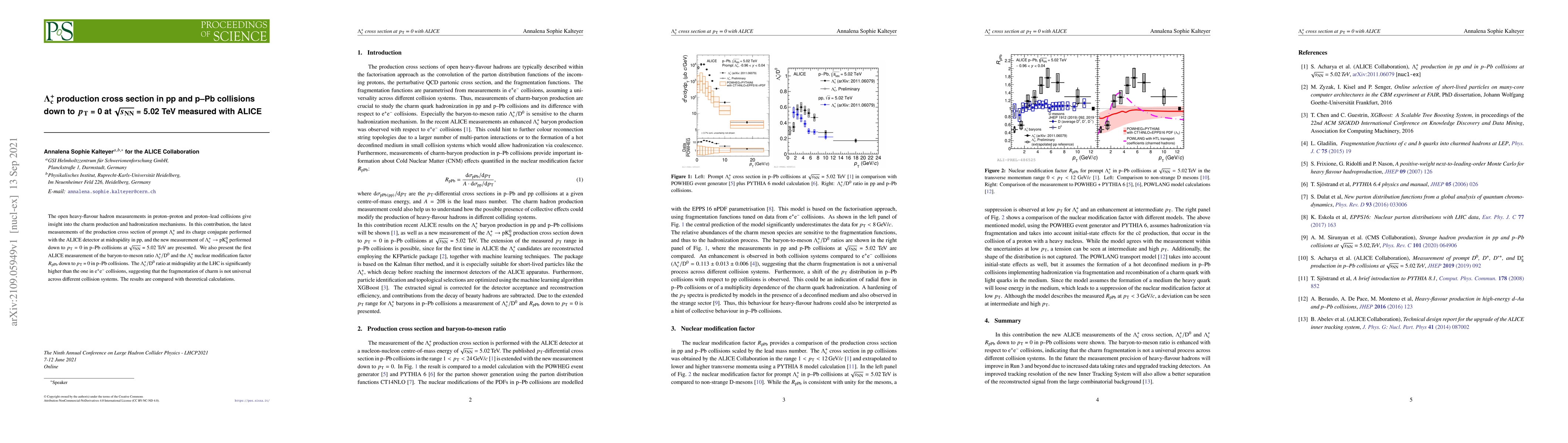 The open heavy-flavour hadron measurements in proton--proton and proton--lead collisions give insight into the charm production and hadronization mechanisms. In this contribution, the latest measurements of the production cross section of prompt $\Lambda^+_{\rm c}$ and its charge conjugate performed with the ALICE detector at midrapidity in pp, and the new measurement of $\Lambda_\mathrm{c}^+ \to \mathrm{p} \mathrm{K}_\mathrm{S}^0$ performed down to $p_{\rm T}=0$ in p--Pb collisions at $\sqrt{s_{\rm NN}}$ = 5.02 TeV are presented. We also present the first ALICE measurement of the baryon-to-meson ratio $\Lambda^+_{\rm c}/{\rm D^0}$ and the $\Lambda^+_{\rm c}$ nuclear modification factor $R_{\rm pPb}$ down to $p_{\rm T}$ = 0 in p--Pb collisions. The $\Lambda^+_{\rm c}/{\rm D^0}$ ratio at midrapidity at the LHC is significantly higher than the one in ${\rm e^+e^-}$ collisions, suggesting that the fragmentation of charm is not universal across different collision systems. The results are compared with theoretical calculations.