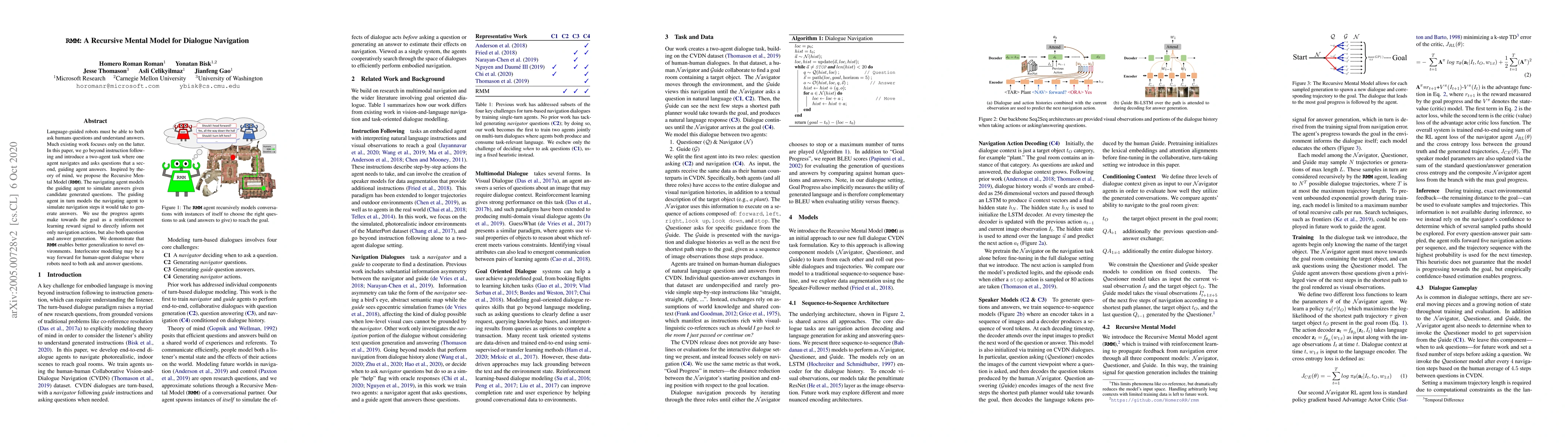 Language-guided robots must be able to both ask humans questions and understand answers. Much existing work focuses only on the latter. In this paper, we go beyond instruction following and introduce a two-agent task where one agent navigates and asks questions that a second, guiding agent answers. Inspired by theory of mind, we propose the Recursive Mental Model (RMM). The navigating agent models the guiding agent to simulate answers given candidate generated questions. The guiding agent in turn models the navigating agent to simulate navigation steps it would take to generate answers. We use the progress agents make towards the goal as a reinforcement learning reward signal to directly inform not only navigation actions, but also both question and answer generation. We demonstrate that RMM enables better generalization to novel environments. Interlocutor modelling may be a way forward for human-agent dialogue where robots need to both ask and answer questions.