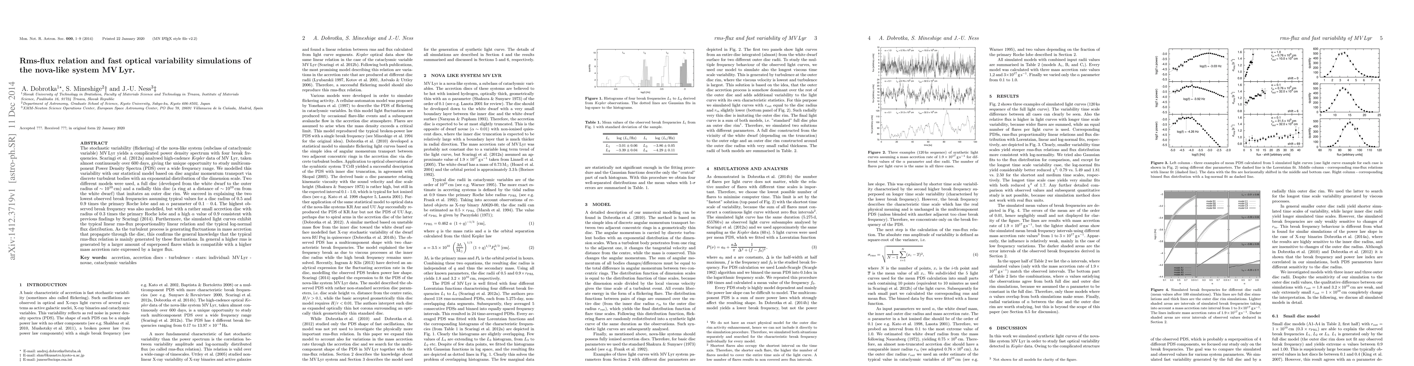 This paper models the stochastic variability of the nova-like system MV Lyr using a statistical model based on disc angular momentum transport. The study successfully explains observed break frequencies in the power density spectrum and confirms the linear rms-flux relation, indicating that fluctuations in mass accretion drive the variability.