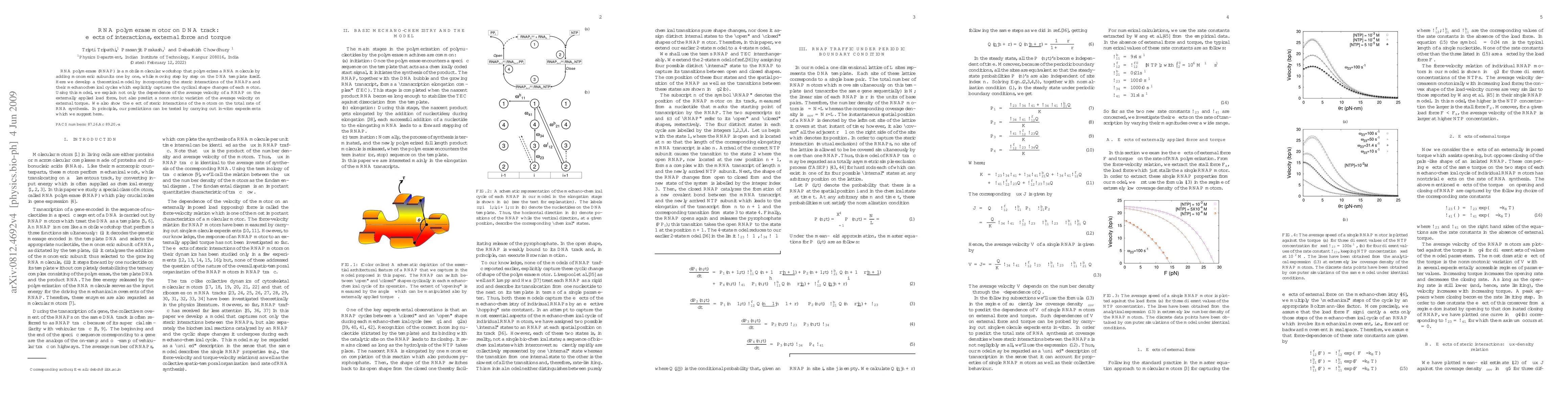 RNA polymerase (RNAP) is a mobile molecular workshop that polymerizes a RNA molecule by adding monomeric subunits one by one, while moving step by step on the DNA template itself. Here we develop a theoretical model by incorporating the steric interactions of the RNAPs and their mechanochemical cycles which explicitly captures the cyclical shape changes of each motor. Using this model, we explain not only the dependence of the average velocity of a RNAP on the externally applied load force, but also predict a {\it nonmotonic} variation of the average velocity on external torque. We also show the effect of steric interactions of the motors on the total rate of RNA synthesis. In principle, our predictions can be tested by carrying out {\it in-vitro} experiments which we suggest here.