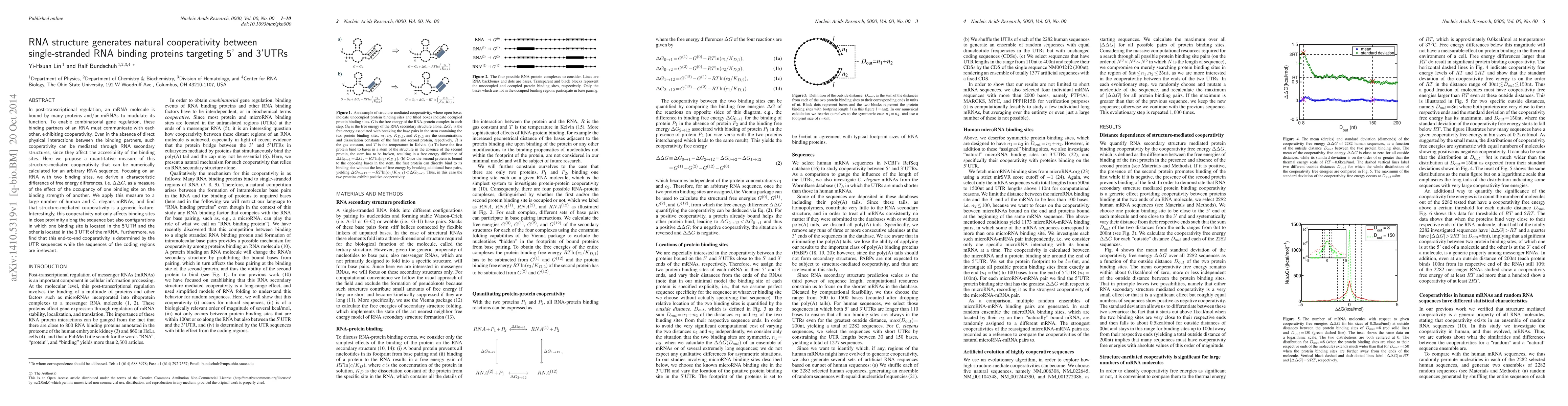 This paper proposes a quantitative measure of cooperativity between RNA binding proteins mediated by RNA secondary structures, demonstrating that such cooperativity is a generic feature in mRNAs. It shows that RNA structure can influence the binding strength between distant sites, including those in the 5' and 3'UTRs, without direct protein interactions.
