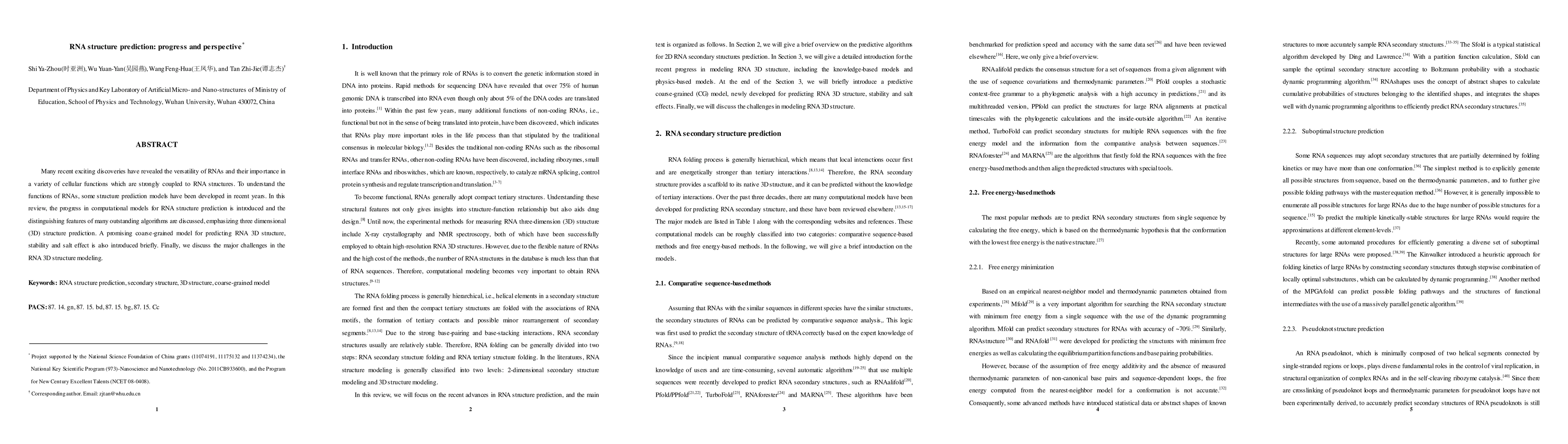 This paper reviews advancements in computational models for RNA structure prediction, highlighting notable algorithms and focusing on three-dimensional (3D) structure prediction. It also introduces a promising coarse-grained model for predicting RNA 3D structure, stability, and salt effects, while discussing remaining challenges in RNA 3D modeling.