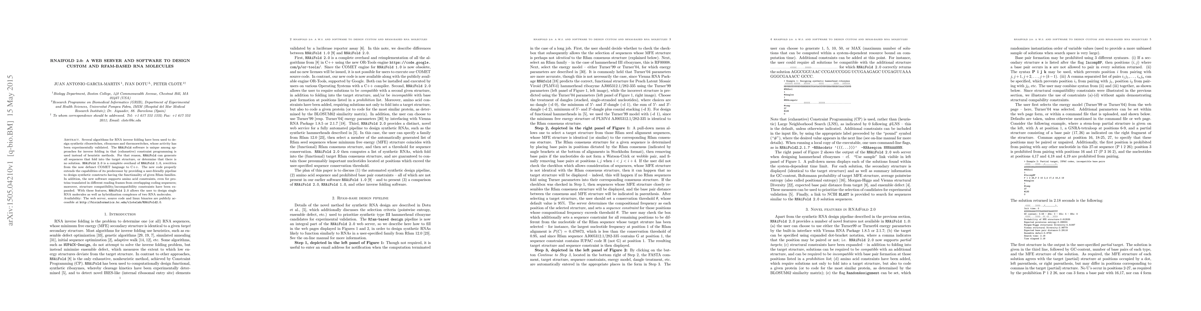 RNAiFold 2.0 is a redesigned RNA inverse folding software that employs constraint programming to generate sequences folding into target structures, offering a user-friendly pipeline for designing synthetic RNA constructs based on Rfam families. It extends its predecessor by supporting amino acid constraints and structure compatibility/incompatibility, allowing design of single RNA molecules and RNA hybridization complexes.